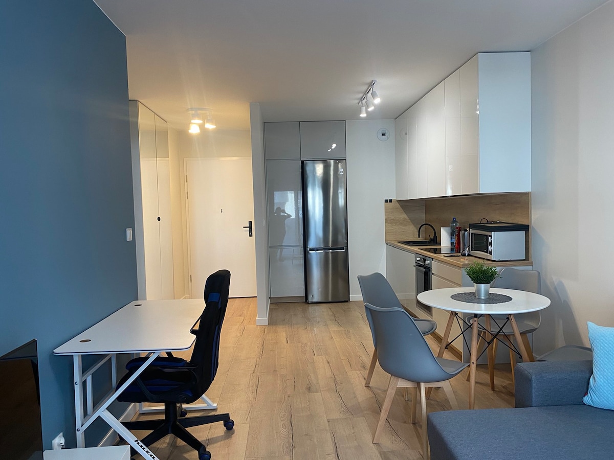 An exclusive, modern and functional apartment with a bedroom, large living room with a beautiful view of Wroclaw. It is located in a new apartment building on the 13th floor with its own underground car park and 24/7 security. The fully equipped kitchen allows you to prepare homemade meals. High standard, comfort, security and a sense of privacy make guests feel at home. Wireless Internet and Netflix. Access to the gym, dry and steam sauna, jacuzzi and children's playroom.