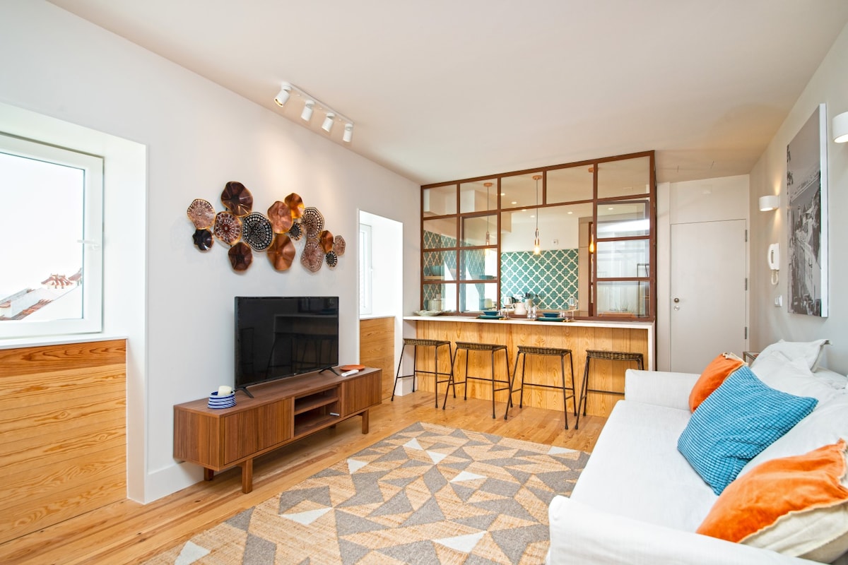 Stunning brand new 1 bedroom duplex, with beautiful river and city views. Very well located in the heart of historical center of Lisbon, in Alfama. With Air Conditioning. It's charm and character is due to the careful combination of modern design and the traditional architecture, such as wooden floors, or typical portuguese tiles. The decoration also combines modern design and a few vintage pieces. This bright apartment offers modern and cosy interiors with a Portuguese touch! Enjoy! 😊