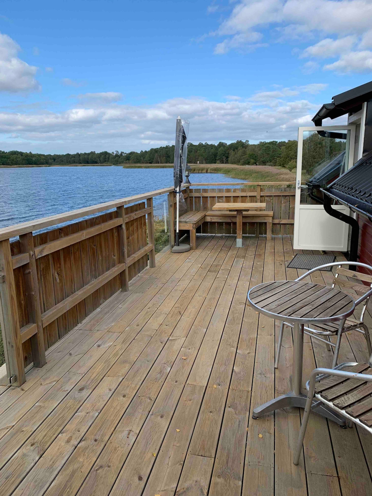 Sjöstugan- vår pärla precis vid sjökanten! Eget hus med sovloft, kök, vackert stort rum med braskamin och utsikt över sjön. Vedeldad bastu med dopp i sjön precis intill. Spabad på bryggan- alltid varmt. Badbrygga 5 meter utanför dörren. Tillgång till båt. Om ni vill köpa fiskekort, kontakta värd. Ved till baskamin och bastu ingår. Gården är inhägnad hela vägen till sjön och vår Beagel hund Vide är ofta lös ute. Han är snäll. Lakan, handdukar och städning ingår.