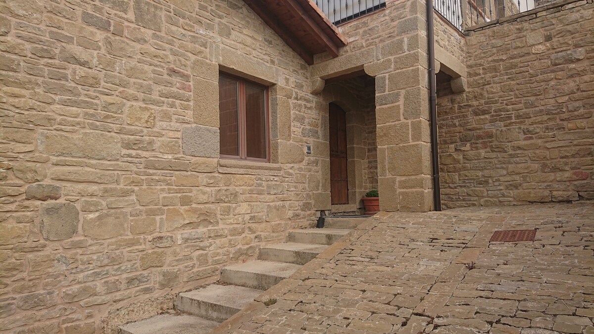 Cozy and quiet apartment in an old stone house next to a medieval tower, within an agricultural and livestock farm. The area is the Navarrese pre-Pyrenees, near Roncesvalles, Leire Monastery, Foz de Lumbier, etc. It's perfect for hiking and tree lovers. 3 km away is the Itoiz reservoir, in the village of Nagore, where you can bathe in the heart of nature. We also have a river. The decor is classic with contemporary touches. The apartment is newly finished.