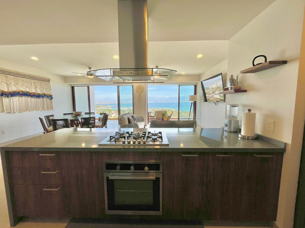 Romantic spacious one bedroom apartment with panoramic ocean views and a private heated pool in the tranquil north end of Sayulita *High speed wifi via Sayulitawifi * Smart TV *Air conditioning and ceiling fans *Kitchen with stove, oven, microwave, blender, coffeemaker and all utensils *Breathtaking panoramic views of the entire bay *King bed, pillowtop mattress *Parking for 1 vehicle *Interior soaking tub and exterior private heated pool *Spacious common area pool and grill *Gym and Yoga