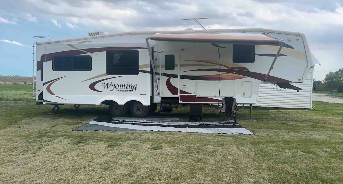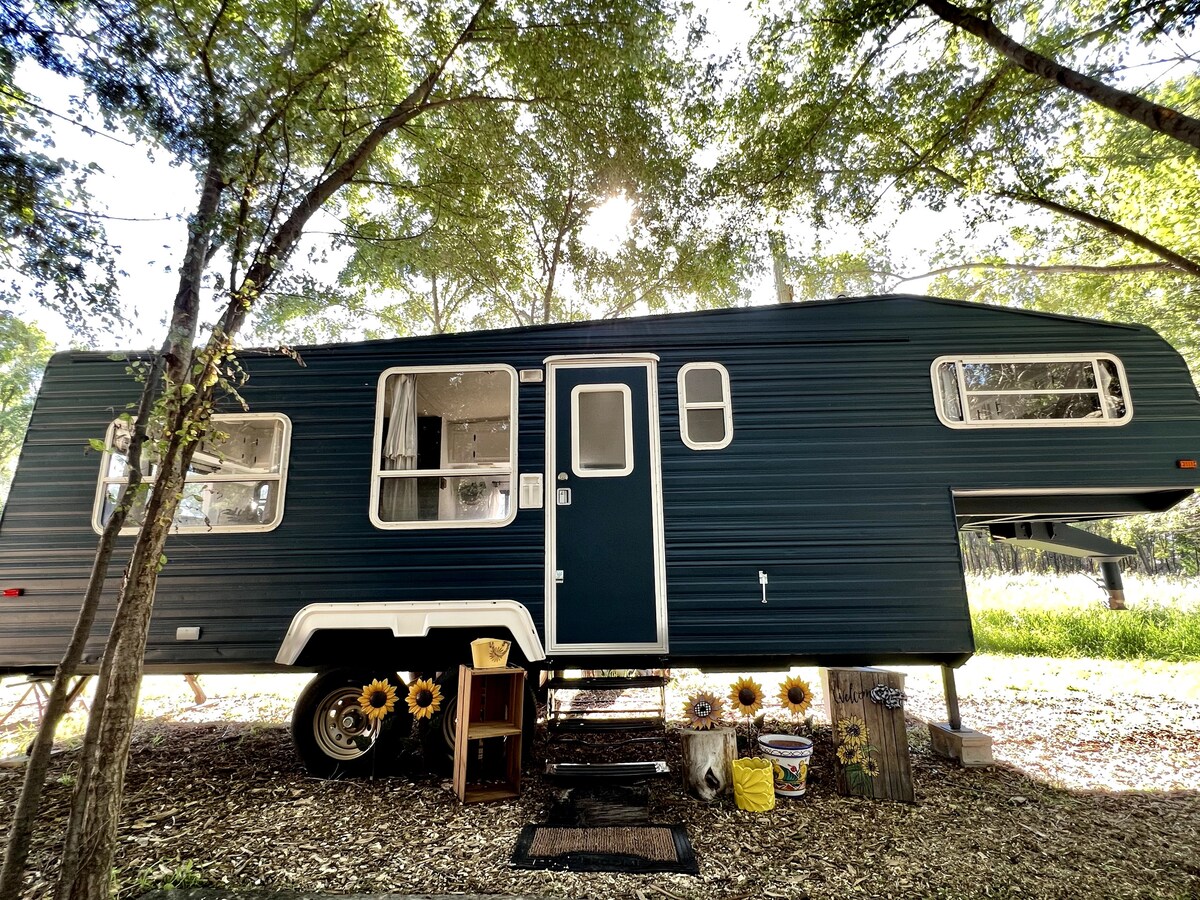 Enjoy the lovely setting of this spot in nature a my 5-acre farm! Our Coachmen is all set and ready to go, you just have to show up! This is definitely glamping with a fireplace indoor & fire pit outdoor.