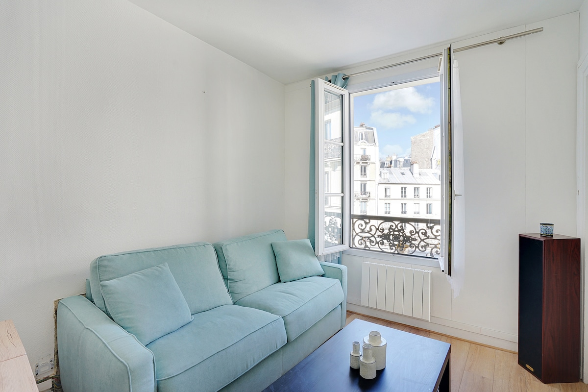 Bright and stylish one-bedroom apartment with a beautiful view of Montmartre. This 34 m² space offers a cozy living area, a fully equipped kitchen, and a quiet bedroom, ideal for a romantic getaway or solo stay. Centrally located with easy access to cafés, museums, and public transport.