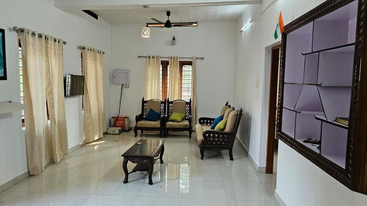 Experience tranquility in our spacious private house with 4 bedrooms. Situated by the water's edge, it's easily accessible by road and offers ample parking. Enjoy authentic Kerala cuisine and BBQ on request. Nearby, you can go fishing, visit a charming church, embark on houseboat adventures, and reach a pristine beach just 7 kilometers away. Your ideal retreat is ready and waiting. Comfortably fits 8 guests. Extra beds and kitchen use available at a charge. Please request in advance.