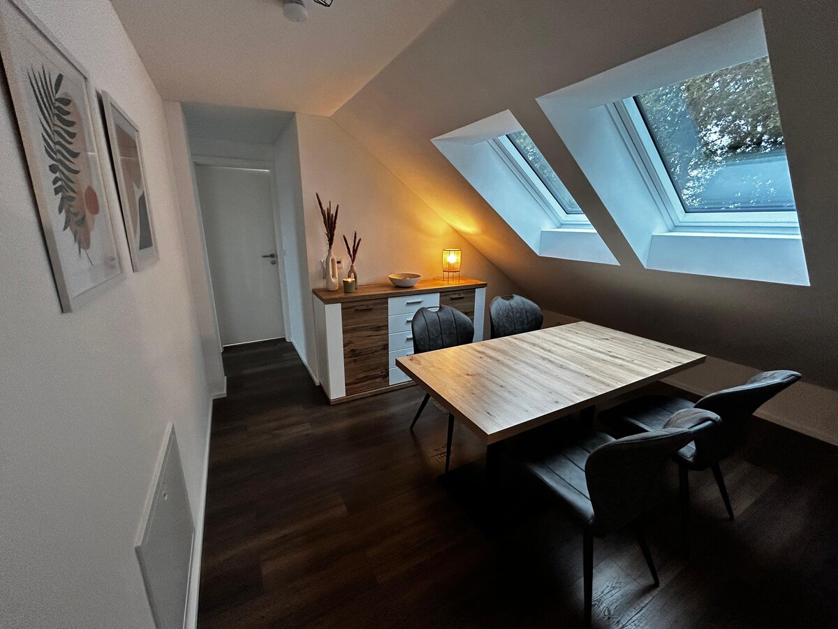 Our house is very quiet at the end of a cul-de-sac next to a meadow and a small forest. You can reach the Great Plön Lake in just a few minutes on foot. The attic, in which the apartment is located, has 3 bedrooms, 1 large kitchen/living room with balcony (southwest-facing), 1 bathroom and 1 small laundry room. A large kettle grill (charcoal) is available on the balcony.