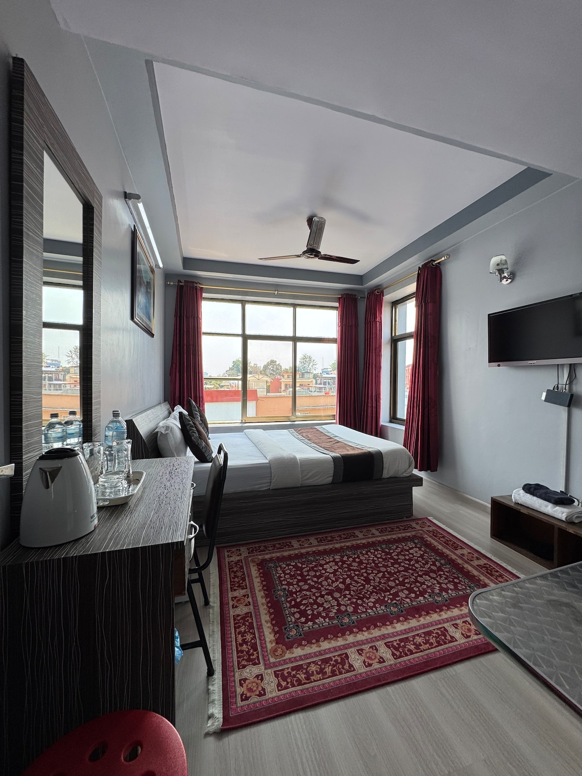 Omana , a team of women led BnB , despite being centrally located in the residential area of Baluwatar, Panipokhari, the property ensures a peaceful stay away from the city’s noise. The airport, heritage sites & city attraction like Pasupati temple, Durbar Square are all nearby within a 5 KM radius. This room features queen size bed, an ensuite bathroom, AC, a mini fridge, & a coffee maker for your convenience. On-site amenities include an in-house restaurant, ample parking & a relaxing garden.