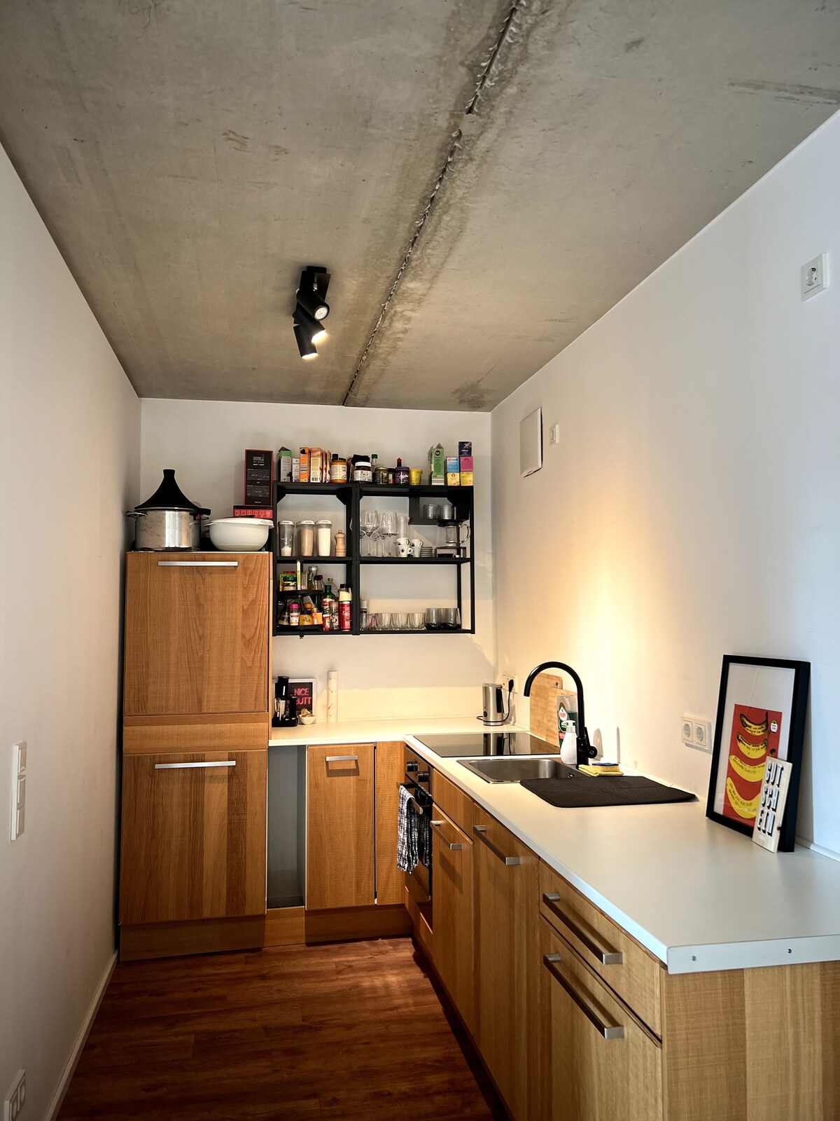 Cool new apartment in the lively Belgian Quarter! Newly created from a former workshop, the apartment offers the ideal starting point in one of the most lively and popular areas of the city. The very bright living room with kitchenette on the street side is complemented by the bedroom on the courtyard side. Everything new after renovation!