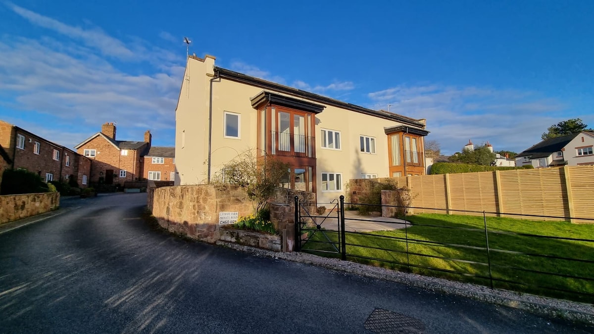 Beautiful, self contained, home from home accommodation. Generous welcome pack provided on arrival. Views over Wirral farmland. 100m to River Dee. 15 mins walk to picturesque Parkgate. 5 miles (10 mins drive) for guests travelling to Clatterbridge Hospital. 4 miles (10 mins) drive to Leahurst Equine Hospital. Quiet, semi rural location. Bars & restaurants Heswall (5 mins taxi). Access to Liverpool, Chester & North Wales. Heswall Golf Club - 2 mins away, Royal Liverpool - 15 mins drive