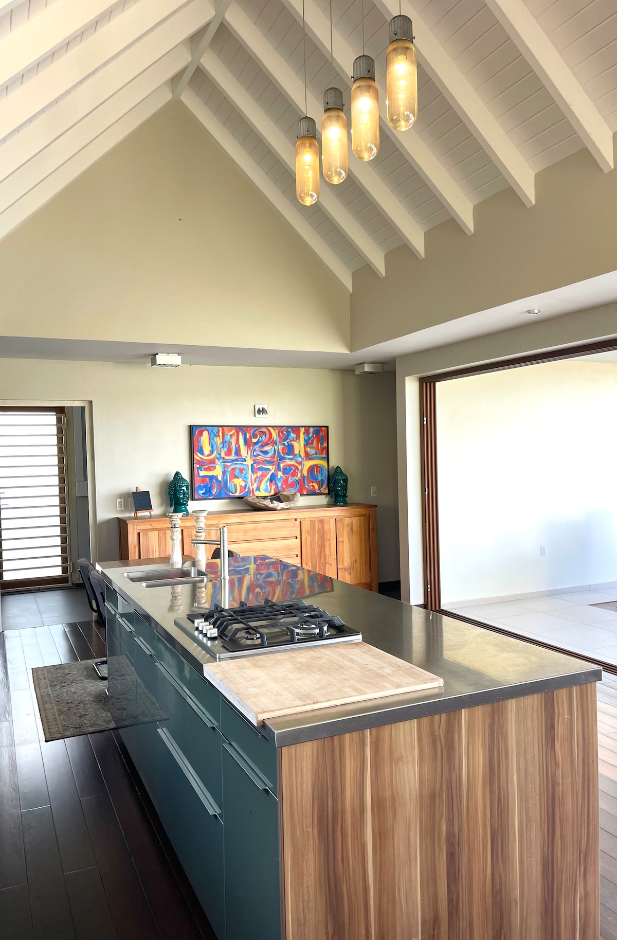 A two-bedroom, one-bathroom upstairs gem with a spacious modern kitchen flows through the rest of the living space. It’s only ten minutes away from downtown Philipsburg, and nearby beaches, restaurants, zip-lining, supermarkets, and nightlife. Twenty-three minutes to the Juliana International Airport and the French side of the island. It offers both modern amenities and the characteristics of a family-friendly environment, with everything you’ll need while on this great vacation and work.