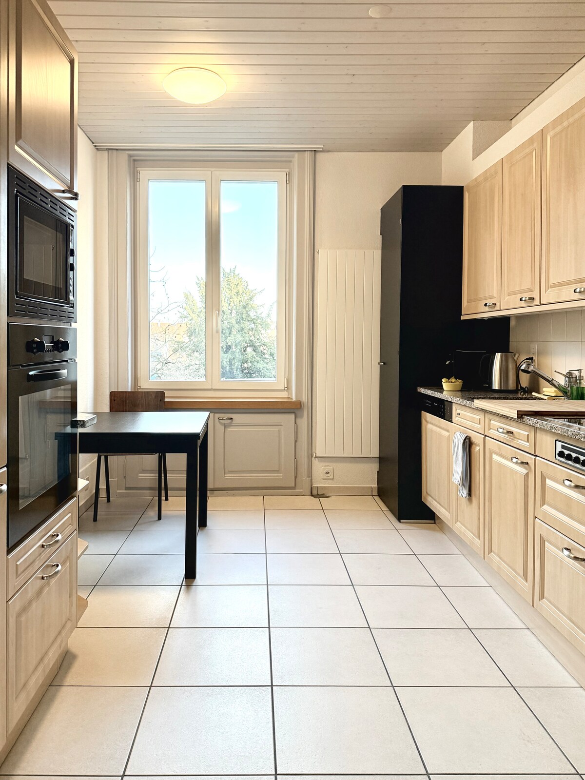 Bright, stylish and spacious studio apartment (32 m²) in the green suburb of Muri near Bern with views of the garden and hills. The studio with large window front is on the 2nd floor of a 3-family house. It has an elevator and is wheelchair accessible. Separate gym in the basement. 8-minute walk to the tram, 11-minute drive to the city center of Bern. Close to a restaurant, bank, post office, supermarket, and pharmacy. Beautiful walks along the Aare River. Great for jogging + swimming in summer.