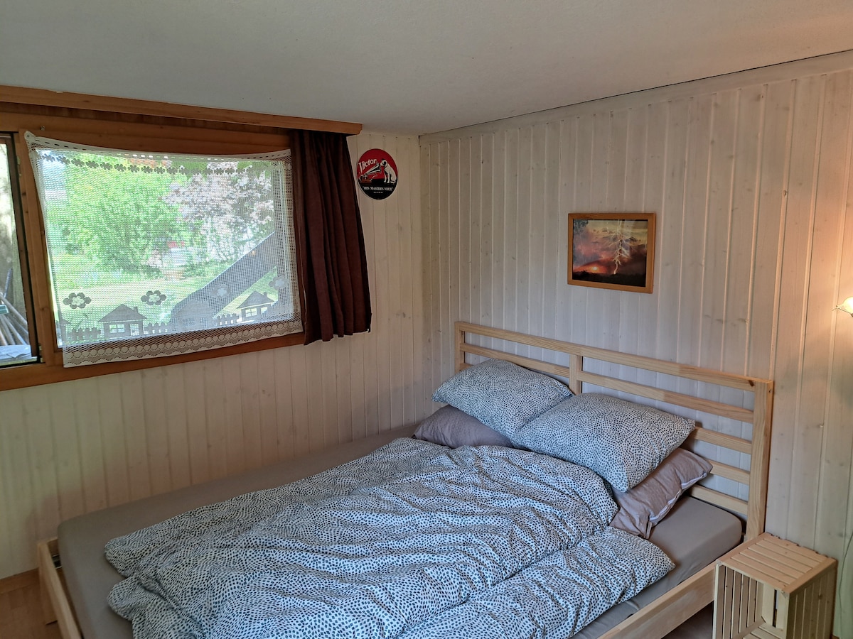This 40 m² studio can accommodate a family of four. It is located in a green setting in the heart of Chasseral Park. There are many things to discover on foot, by mountain bike, on skis, cross-country skis, or snowshoes, depending on the season. Private garden area. A parking space is reserved in front of the studio. The area is bike-friendly. Wi-Fi and mobile network available. The tourist tax is CHF 4.20 per night per adult. It must be paid in cash or by TWINT upon arrival.
