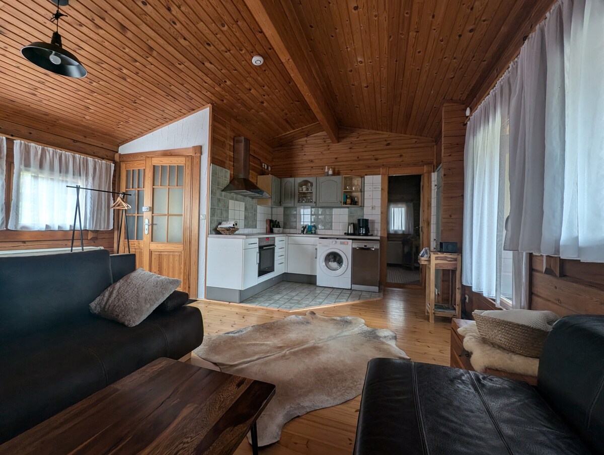 Nature-loving and healthy living in a log cabin with a spacious terrace and garden. The open dining and living area offers cozy flair. The kitchen is fully equipped. You have free Wi-Fi. There is a bedroom with a double bed (140 × 200) available, open access to the bathroom. Additional sleeping on the sofa. If you would like to travel with a baby, please write to us regarding a crib. Bedding is provided, as are towels.