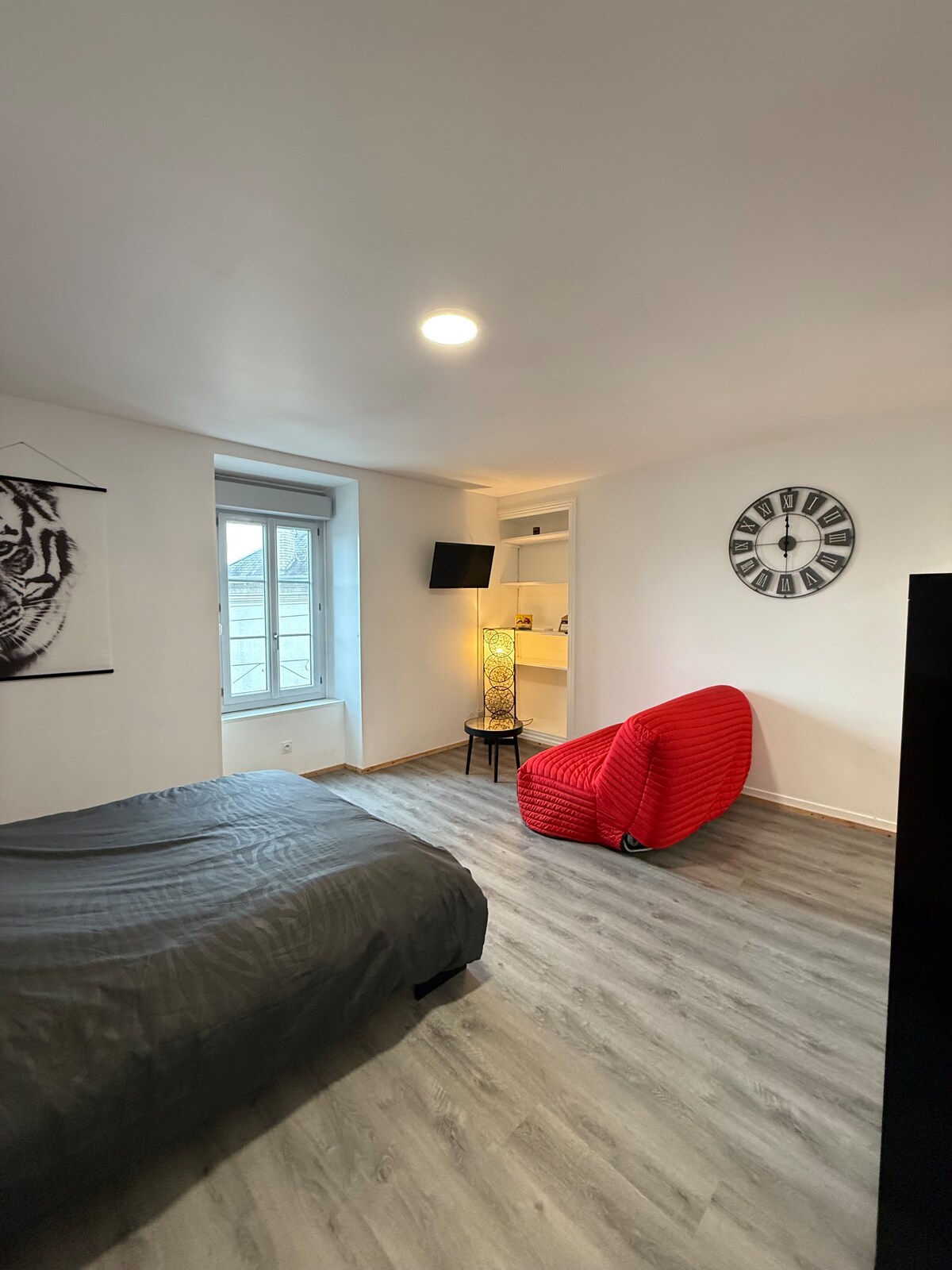 Welcome to Côté Cour, a recently renovated apartment located on the 1st floor of a small secure building in the center of Châteauroux. The accommodation, located 500 meters from the train station and the city center, is close to all amenities within walking distance (supermarket, bakery, catering...) Parking is free on the street. Enjoy all the benefits of downtown without the inconveniences. Come and enjoy the calm of this brand new contemporary and fully equipped home.