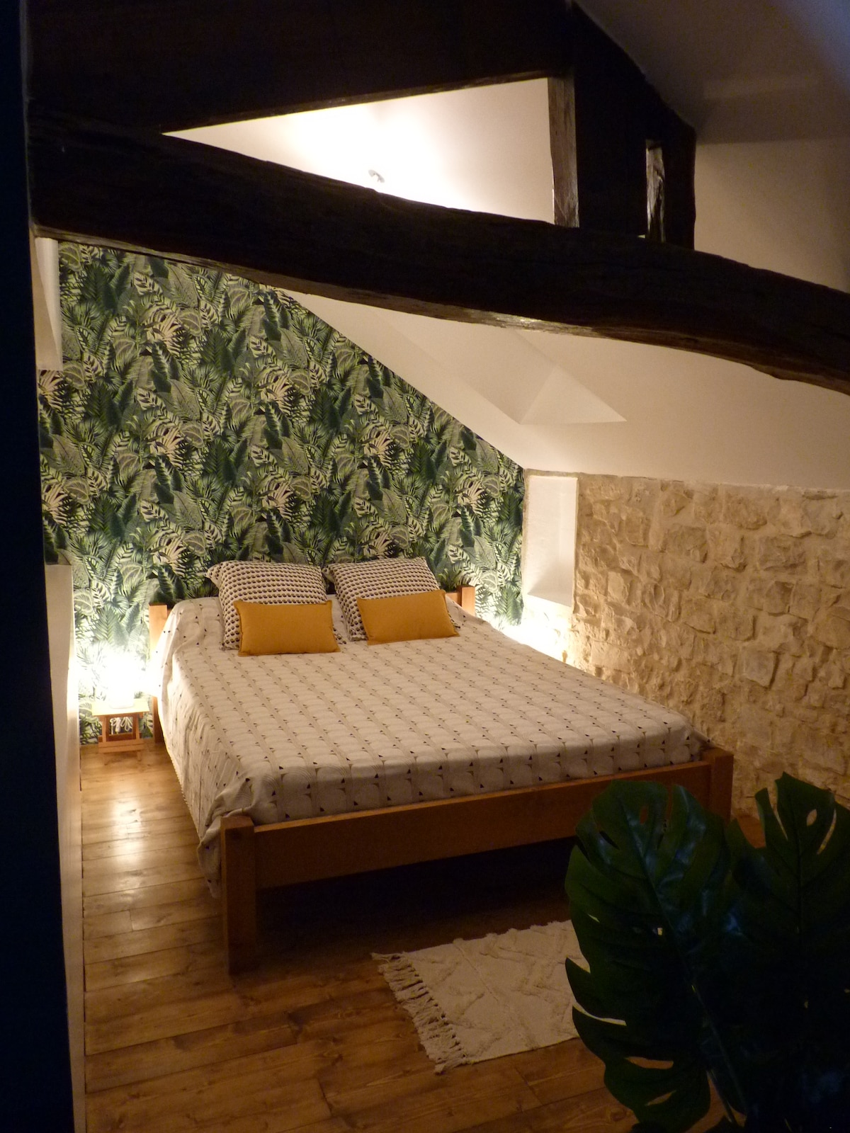 Welcome to the Escapade, an atypical apartment located on the ground floor of a small building in the heart of the city. The property is completely renovated and equipped. Guests can relax in a private spa for an additional charge of €80/night. This cozy nest, close to all amenities (train station, restaurants, bakery, pharmacy, market...) within walking distance has a private parking space. You can enjoy all the benefits of the city center without the inconveniences