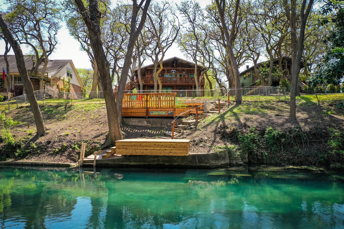 "Best River House ever!" ... Amazing River views from every room PLUS Ranked #1 Trout Fishing spot in Texas. Deck access from every bedroom. Upper & Lower Decks, Living, Dining, 3 Bedrooms, 2 1/2 Baths, Office & Game Room. 2 Big Screen 4K TV's, Pool Table, & Foosball. Outdoor Grill and Fire pit. Newly Renovated. (Trout Fisherman's Paradise, across Road from Action Angler Fishing Gear & Guide) (W.O.R.D. Permit # L1451)