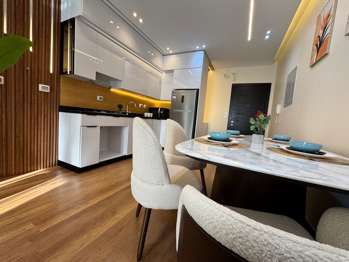 Our modern penthouse with a private pool is perfect for families seeking convenience and luxury. Located in a gated community in the upscale area of New Cairo, just 30 minutes from the airport, and close to amenities like KFC, Starbucks, and a variety of Western and local restaurants (Chili's, Fuddruckers, LongHorn Texas, Ibn Al Sham). Amenities like a King Bed, washer, dryer, dishwasher, and microwave ensure comfort, and 4 smart TVs provide entertainment.