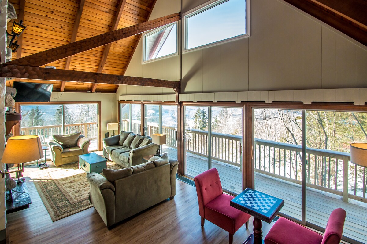 Relax at Valley Vista Lodge, our family-friendly White Mountains chalet with panoramic mountain views and 3,000+ sq. ft. of space. Relax in the private, covered hot tub, cozy up by the fireplace, or spread out across five bedrooms. Perfect ski rental near Attitash, Cranmore, and Wildcat, just 3 minutes from Story Land and 10 minutes to North Conway shopping. Ideal for multi-family getaways, ski weekends, and adventures in the mountains year-round.