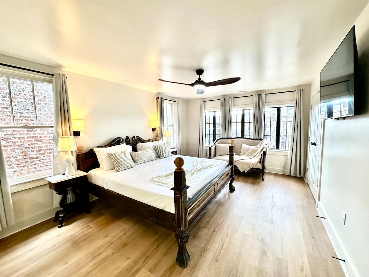 Soak up Victorian historic charm w all of the modern updates in this spacious HGTV renovation as seen on TV show New Orleans Reno. The Bywater Beauty on Louisa Street boasts a relaxing large front porch, free street parking day & night, chic interior w 12.5” ceilings, living room pocket doors for additional room privacy, SMART TV, eat-in kitchen w oversized marble island, 1 luxury QUEEN Simmons mattress sold by the Four Seasons Hotel w Hotel Collection & Ralph Lauren bedding, 1 QUEEN & 1 TWIN air mattresses, stylish en-suite bathroom w shower & toiletries, central AC/heat w a ceiling fan in primary bedroom, & an Alarm system. Guests say the rental is even more stunning in person & the host is quick to respond! Licenses #23-NSTR-13400 & #24-OSTR-03209. Bywater is NOLA's most sought after hip & historic neighborhood that offers its own world-class restaurants, bars, riverfront park, along with creative neighbors! It provides a respite from the French Quarter and Frenchmen Street that are both less than 1 mile away.