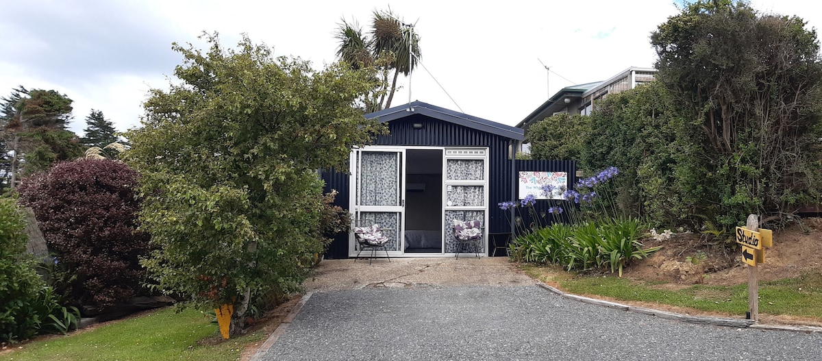 The Whimsical Studio is a light, spacious and private wee haven. Fully self-contained with a larger bathroom, awesome shower and a well equipped kitchen. Surrounded by nature with a covered deck and cute courtyard to enjoy the beautiful outlook across the paddocks towards Taramea Bay & beyond. We have an array of birdlife to observe and a resident Kereru. By night stargazing is easy with the wide open sky while listening to the creek, the sea, frogs & morepork.