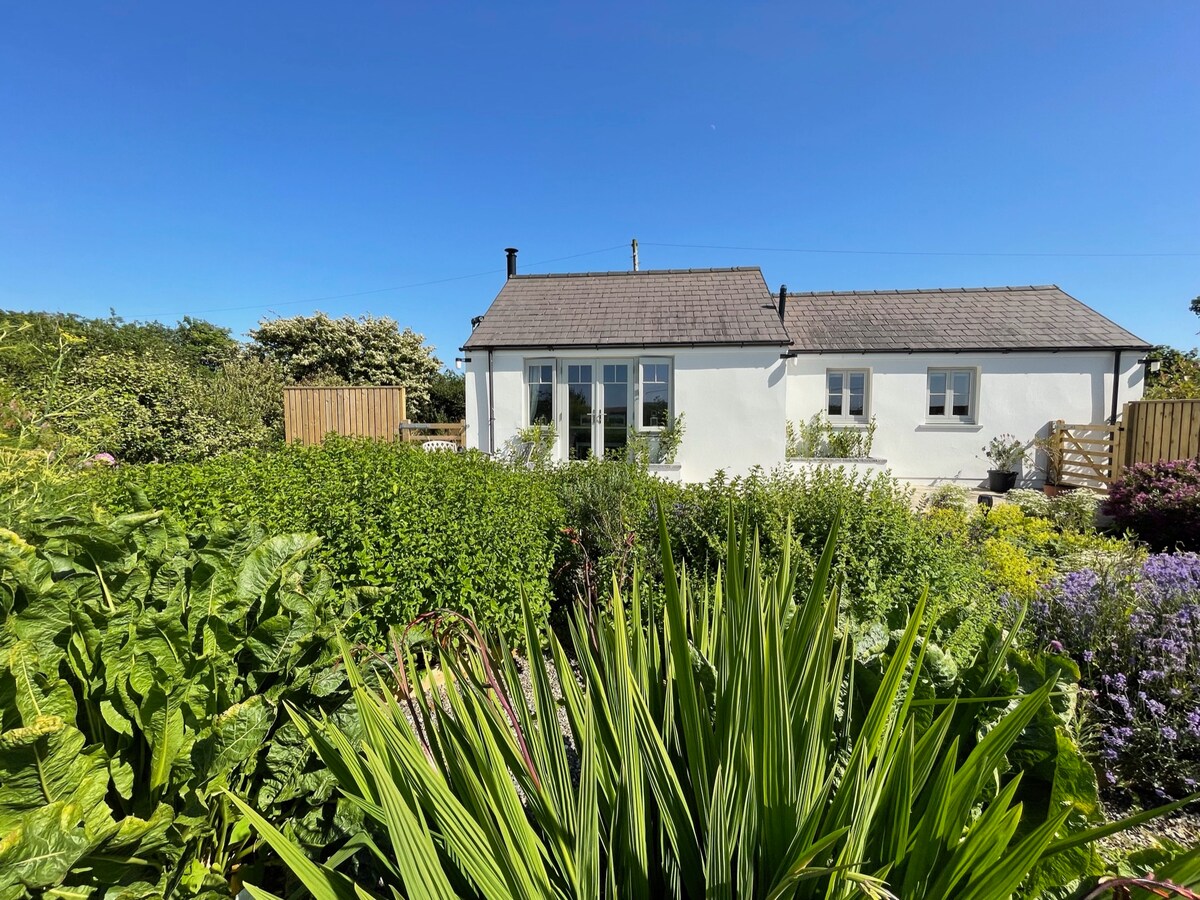 Romantic Pembrokeshire cottage in beautiful 3-acre grounds with sauna, natural swimming pond (rain dependent), games room & kayaks. Hill walks on the doorstep, stunning beaches & cliff walks nearby. Stargaze from a comfy king-size bed. Snuggle up by a wood-burning stove (free wood). Large bathroom with bath, shower & underfloor heating. Well equipped kitchen with coffee machine. Covered outdoor seating area with firepit & bbq. Fibre internet, smart TV (Netflix etc). 2 well-behaved dogs welcome.