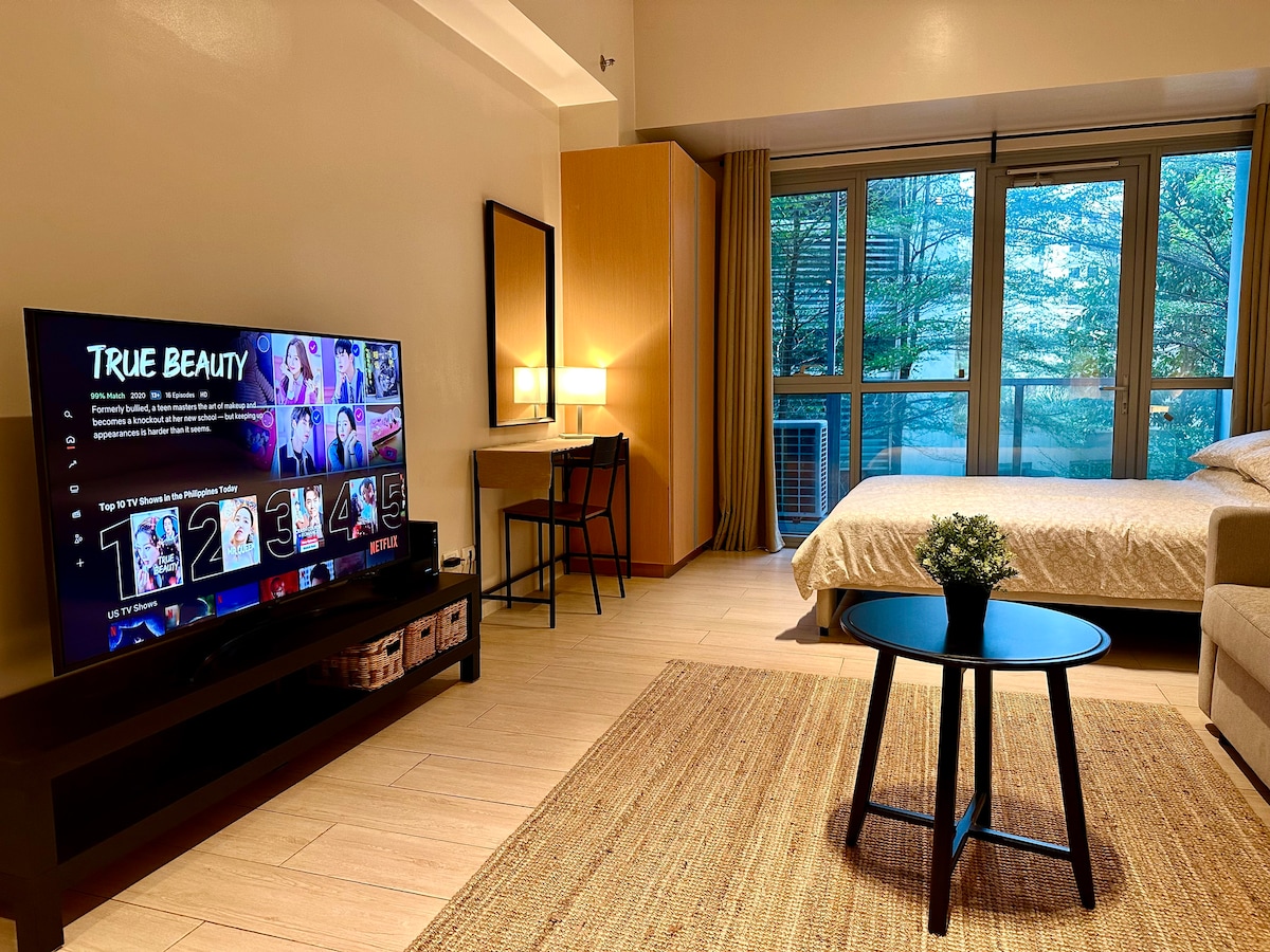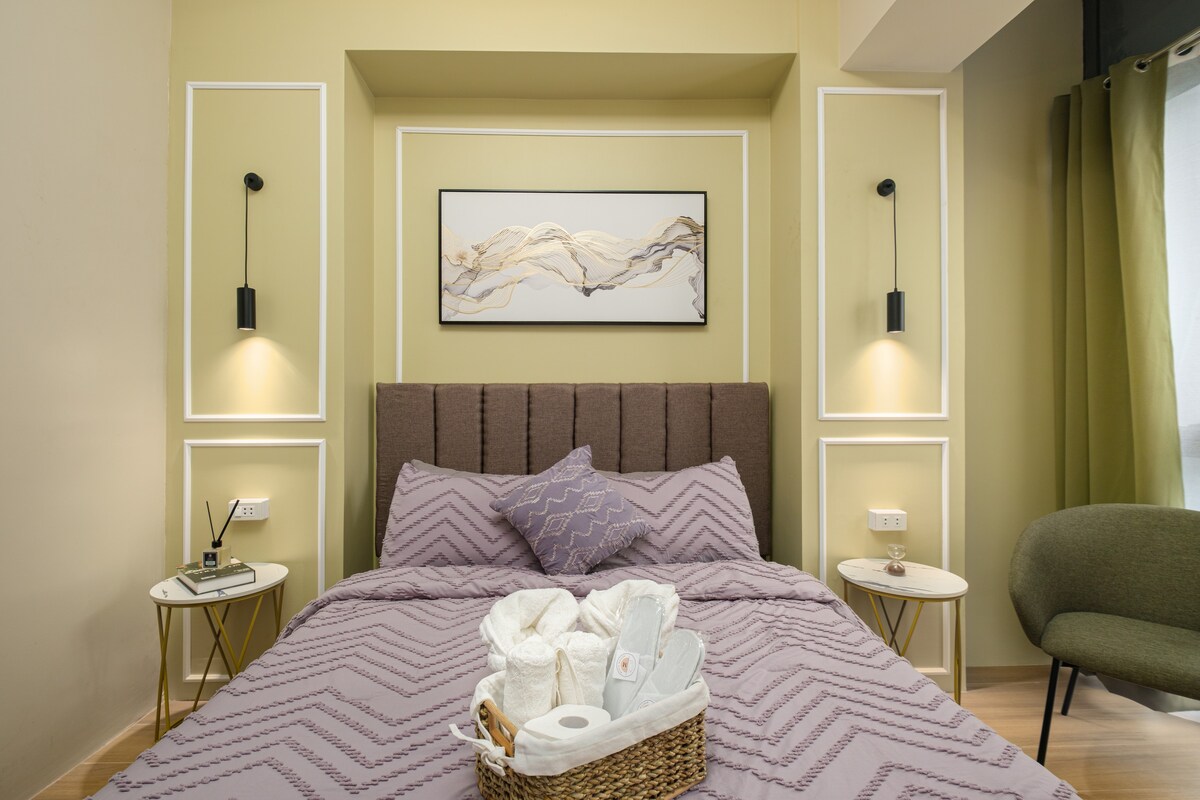 Olllaa Iâm Bella! My unit is a 32sqm studio w/ Balcony Boho-Modern style getaway at One Palm Tree Villas in Newport, Pasay City! -Conveniently located just a 3-5 min walk from NAIA Terminal 3 via Runway manila. - High speed Wifi (150mbps) -Netflix/HBO-Go/Youtube -Free access to Pool -Complete with basic essentials,Hot and cold shower, complete Kitchen utensils and can cook Perfect for travelers seeking comfort and accessibility. Enjoy easy access to nearby restaurants, salons and many more..