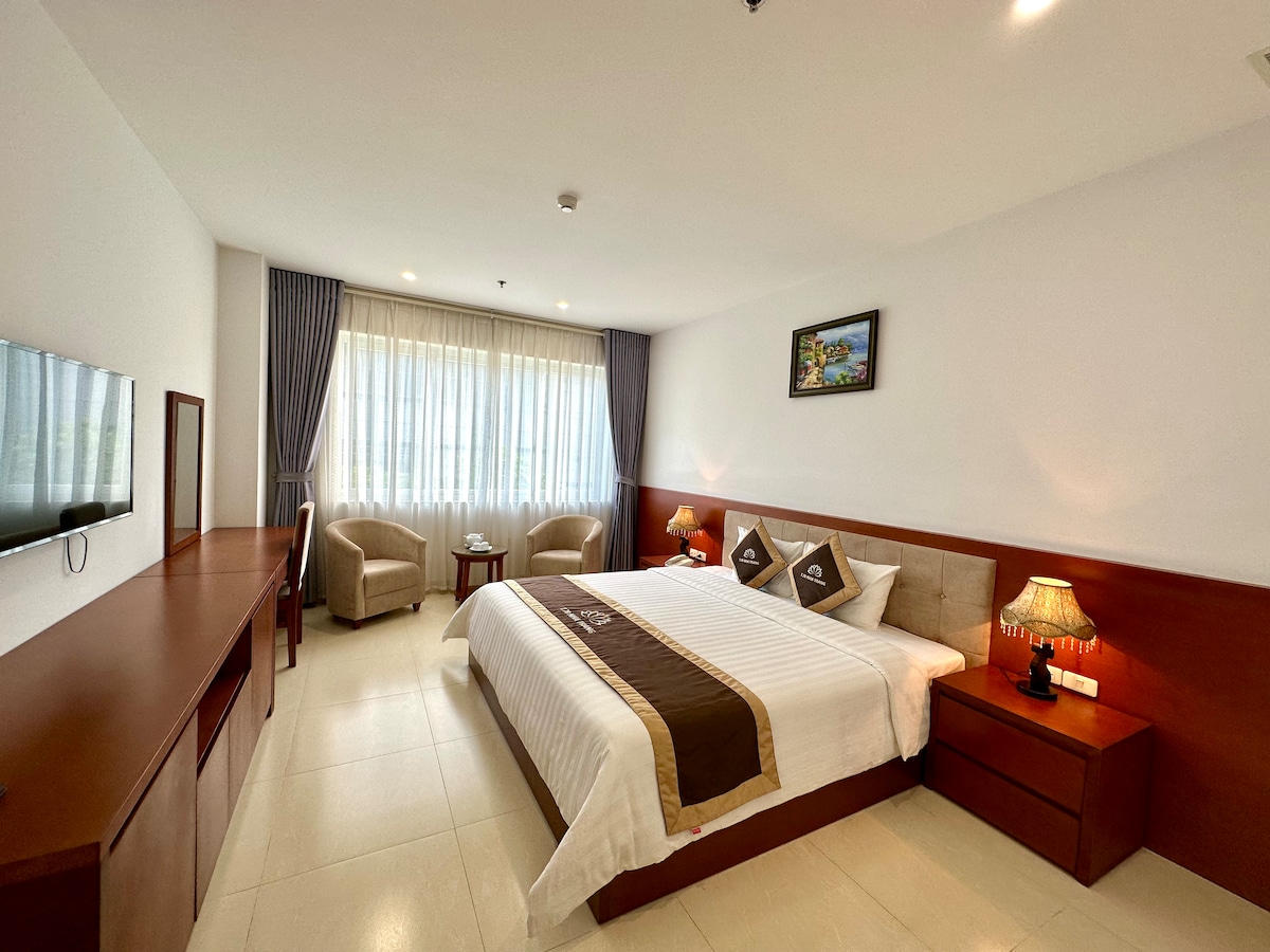 Stay at our 4-star hotel by the ocean in the heart of Nha Trang! Enjoy the outdoor jacuzzi, 24-hour front desk, and free Wi-Fi. Each room includes air conditioning, seating area, flat-screen TV with cable, safe, private bathroom with shower, toiletries, hairdryer, and a kettle. You’ll be steps from the beach, local eats, and nightlife—perfect for exploring the city. Just a heads-up: being in the lively center means you might hear a bit of Nha Trang’s vibrant buzz now and then.