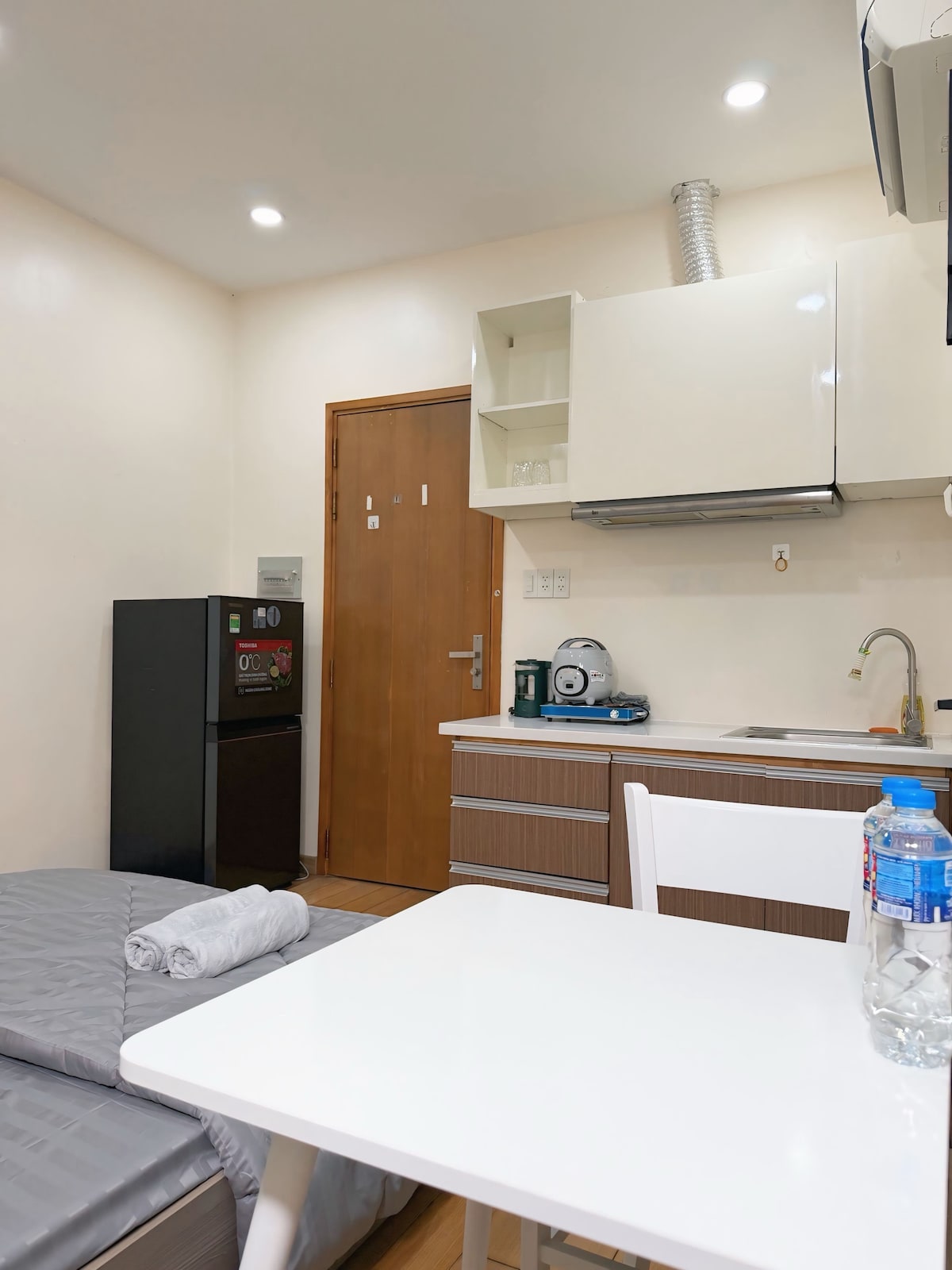 Please be advised that there is ongoing construction in the surrounding area. While the work does not affect access or the quality of the apartment, some daytime noise may be audible. You will feel relaxed in this calm and stylish space. There are many convenience stores, restaurants, and coffee shops nearby, along with access to infinity pool and gym. 15 mins to reach Thao Dien This 1-BR condo has beautiful city view 1 bedroom 1 bathroom Kitchen and living room Smart TV with Netflix function