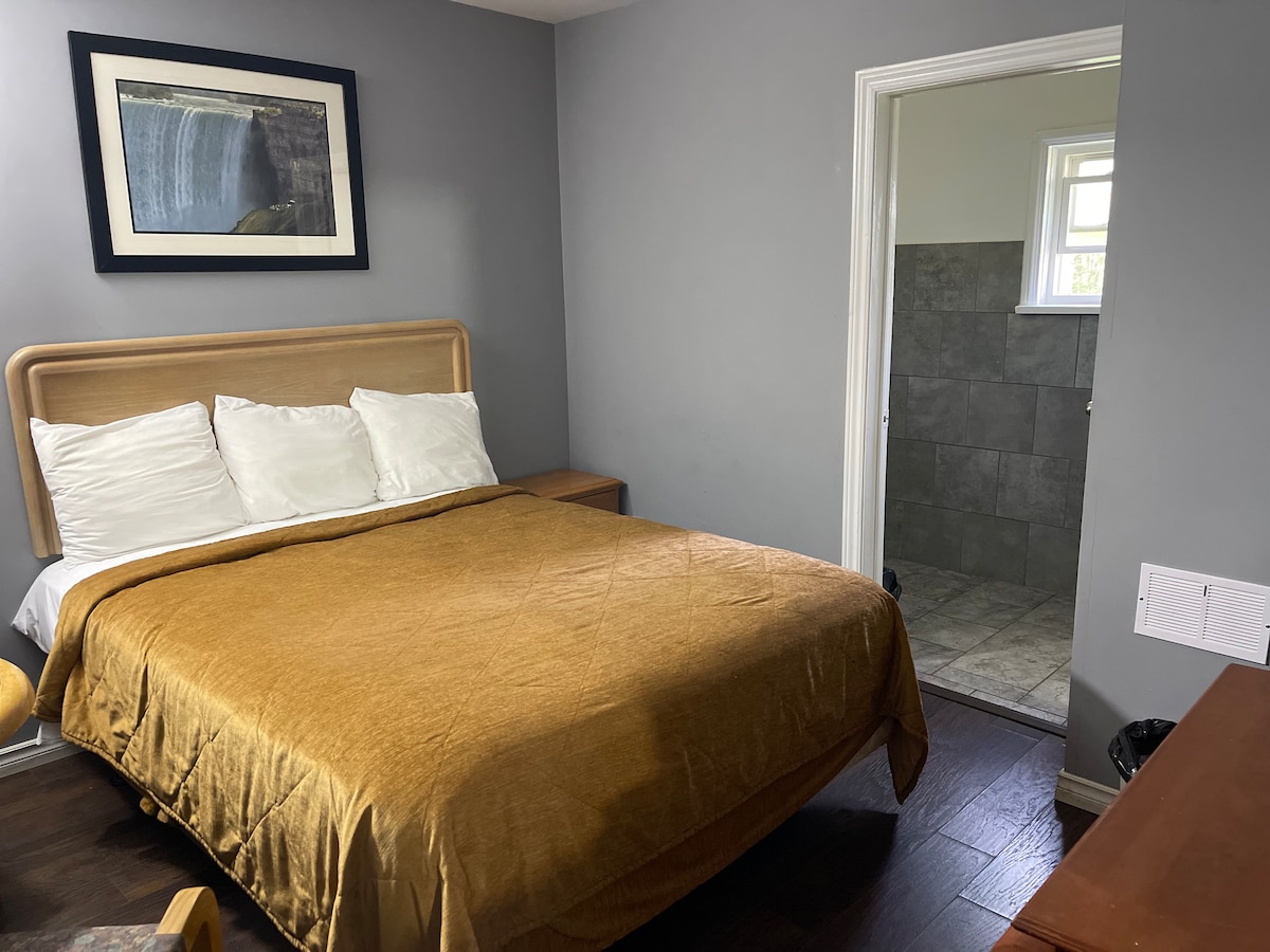 Motel room, very close to the falls Looking to visit Niagara? Or a romantic getaway? Book our Fully furnished private room that has its own private entrance 1 King size bed, a full shower & Hot tub. Clean, comfortable, affordable guestrooms. Room is equipped with TV, mini fridge & microwave. Enjoy the close walk to the falls, casino and attractions. Free coffee available in the office lobby and our office is open 24 hours for your convenience. Enjoy free WIFI & Parking