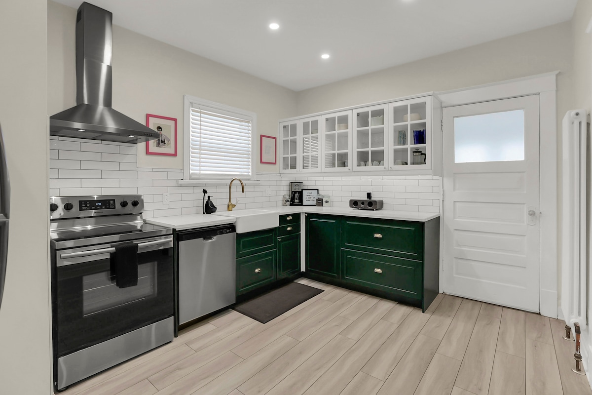 Step into a bygone era with this unique, revitalized vintage 50s home. Experience the warm & cozy, rustic farmhouse charm infused with modern amenities: ✔ In/outdoor projector with ultd movies/shows ✔ Firepit, hammocks ✔ Outdoor games - foosball, darts, cornhole, jenga, yardzee, bball ✔ Charcoal/propane BBQs ✔ Popcorn machine ✔ Board games ✔ Vinyl music ✔ Sunroom ✔ Rockers ✔ Bidet/heated toilet ✔ Rain shower ✔ Smart home ✔ Bicycles & more 8 mins car/15 mins bus/45 mins walk to the Falls.