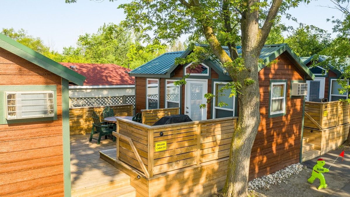 Relax with the whole family at this peaceful place. Our PREMIUM lot would give you everything, like farm and big pool views, large deck with full sunshine in the morning, close to big pool, small salted pool, tennis court and children playground. One master bedroom, two trailer style bunkbeds bedrooms and one double sofa bed of 466 square feet are waiting for you and your lovely family. Enjoy your natural fresh air at our beautiful and comfortable resort in Niagara-on-the-lake. Thank you.