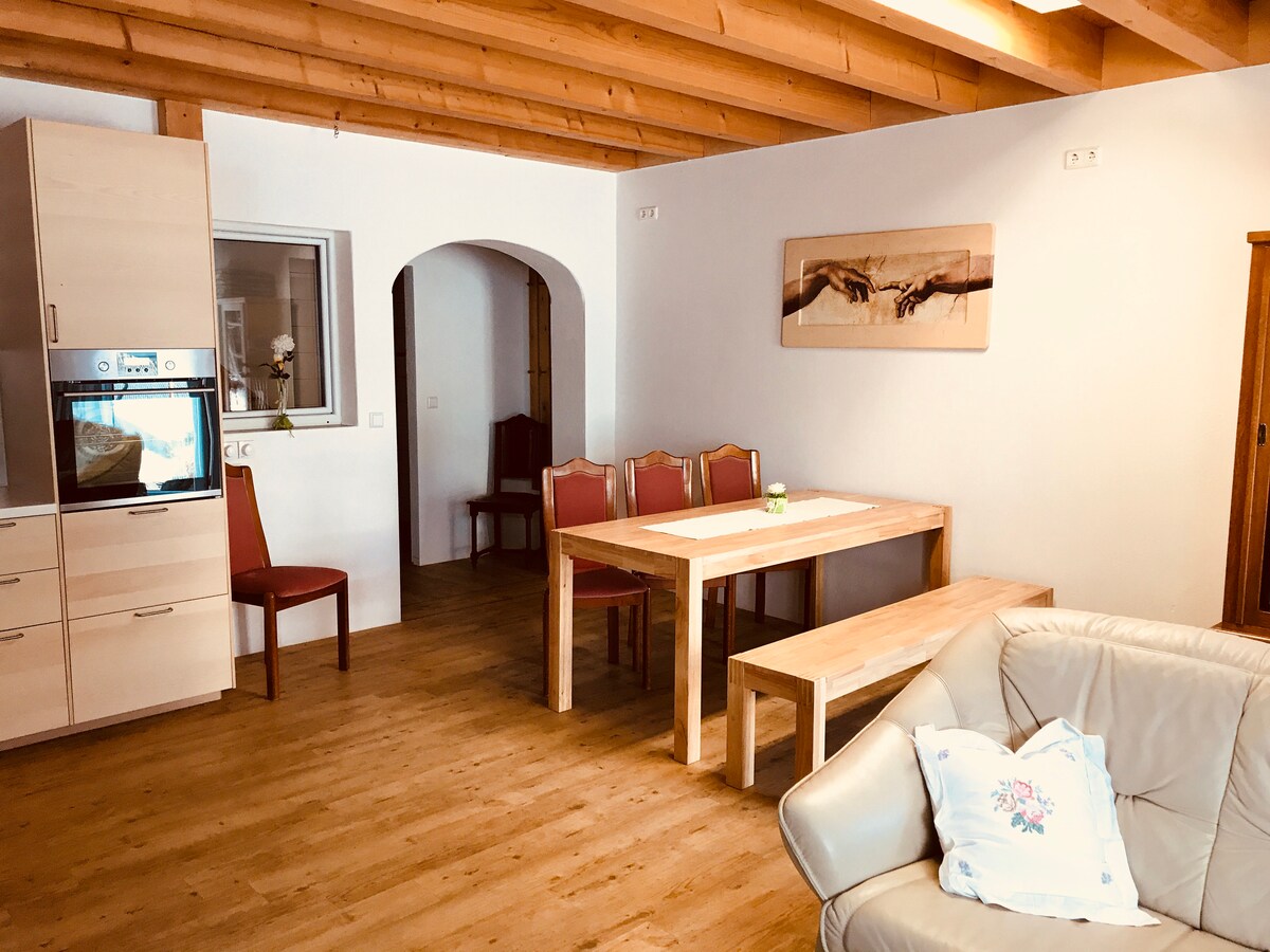 In our listed former inn, our lovingly designed apartment for up to 5 people welcomes you with a friendly living-dining area, kitchenette, two bathrooms each with a spacious shower and the special sleeping experience in our sleeping berth equipped with real Swiss pine wood. Large garden with outdoor pool, sun loungers and play area for children. Relaxation after extensive hikes and cycling in the beautiful surroundings is offered by our infrared cabin.