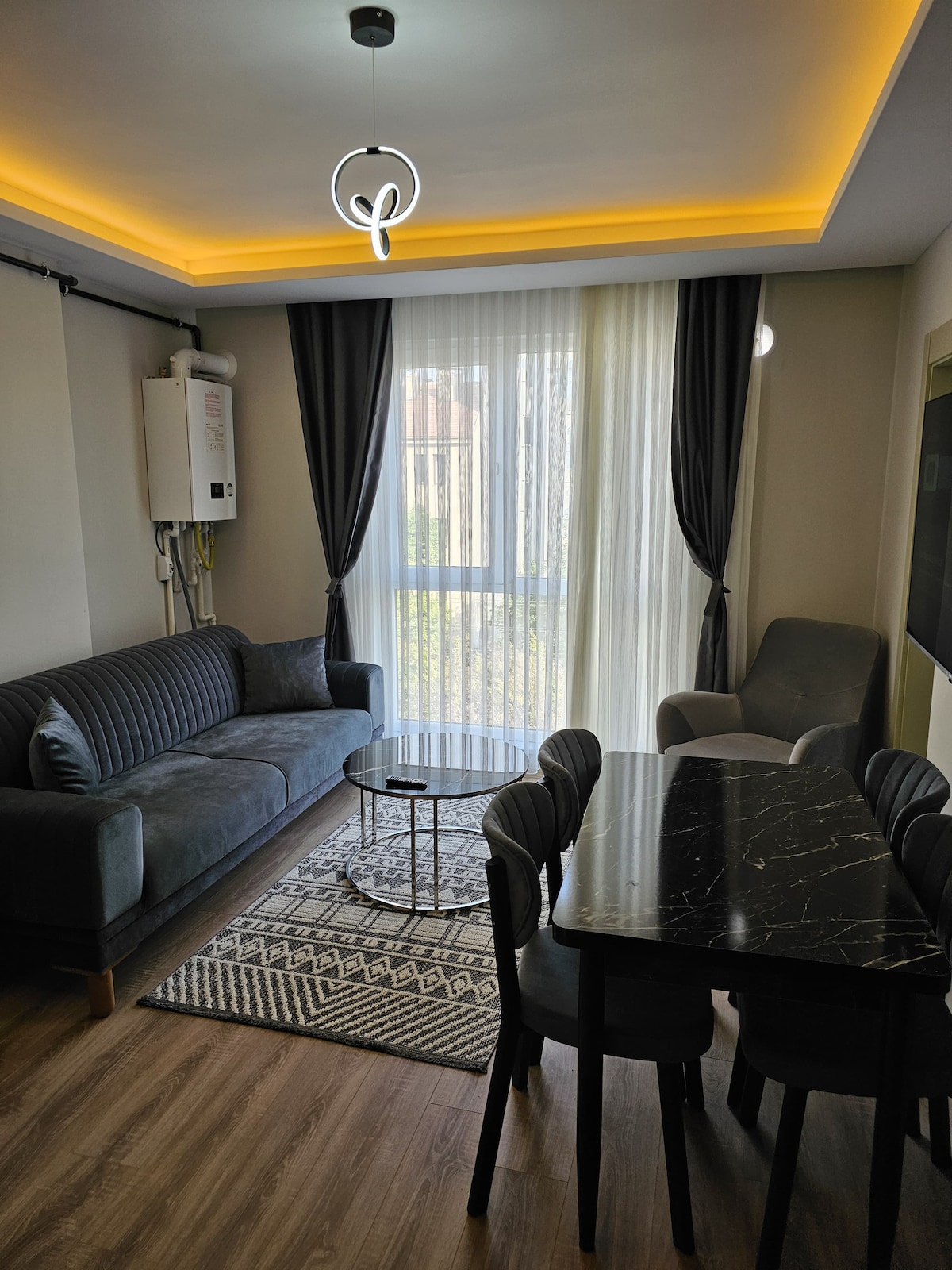Hello, I would like to host you in my new apartment designed with new items. My apartment is in the city center; on Ebulfeyz Elçibey ( Cafes) Street, the most vibrant location in the city. All restaurants and shopping malls will be just a few minutes away. Parking is available on the street in front of the building. I have a private enclosed garage for those traveling by bicycle and motorcycle. I will be happy to host you and meet you.