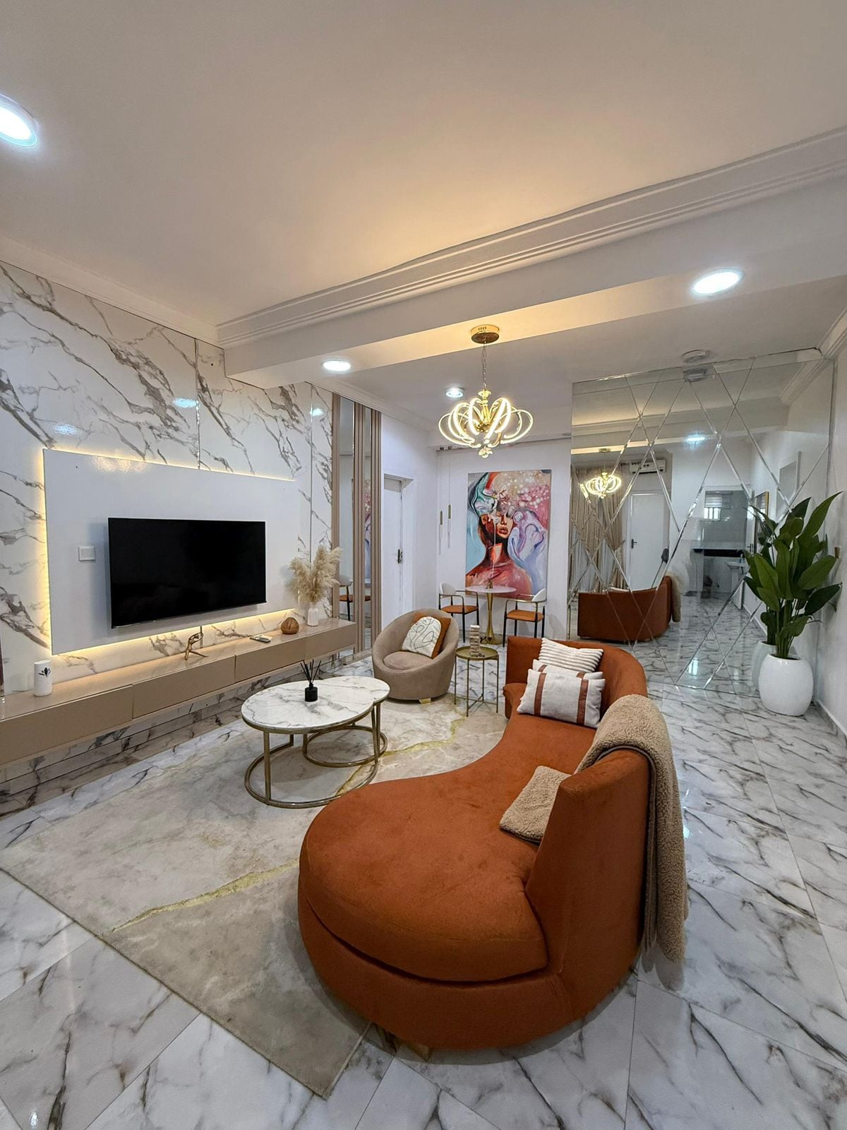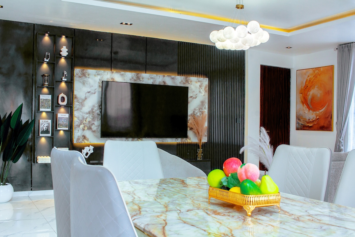 Escape to comfort in this stylish 4-bedrooms, 4.5-bath apartment in Oniru Estate, Victoria Island, Lagos. Enjoy a spacious living room with soft sofa, AC, Wi-Fi, Smart TV with Netflix, and a cozy dining area. The fully equipped kitchen has everything for home-cooked meals. Each ensuite bedroom offers comfort and privacy. Perfect for families, business travelers, or groups seeking luxury, convenience, and 24/7 security in one of Lagos’s most sought-after neighborhoods.