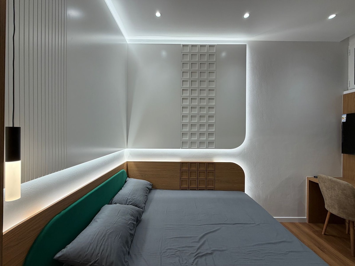 Step into a world of sophistication and artistry, where Parisian style meets contemporary luxury. Adorned with stylish mouldings, elegant furnishings, and natural plants, this apartment is a haven of elegance and charm. Lose yourself in the beauty of forest-themed mural, adding a touch of enchantment to the space. Whether you're curled up with a book in the cozy seating area or indulging in a glass of wine on the balcony, every moment is imbued with an air of refinement and grace.
