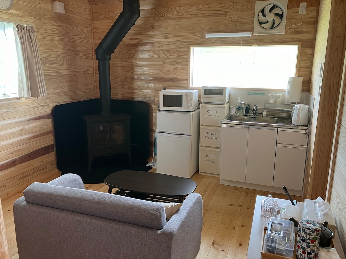 This is a private cottage located in Gokase Town, located in the middle of Kyushu. It was designed and built by my father, a log builder, and opened in September 2024. It's reserved for private use, so you can spend your time at your leisure. A wood stove is also available for use during the winter. In summer, you can enjoy picking blueberries in the guesthouse's area.