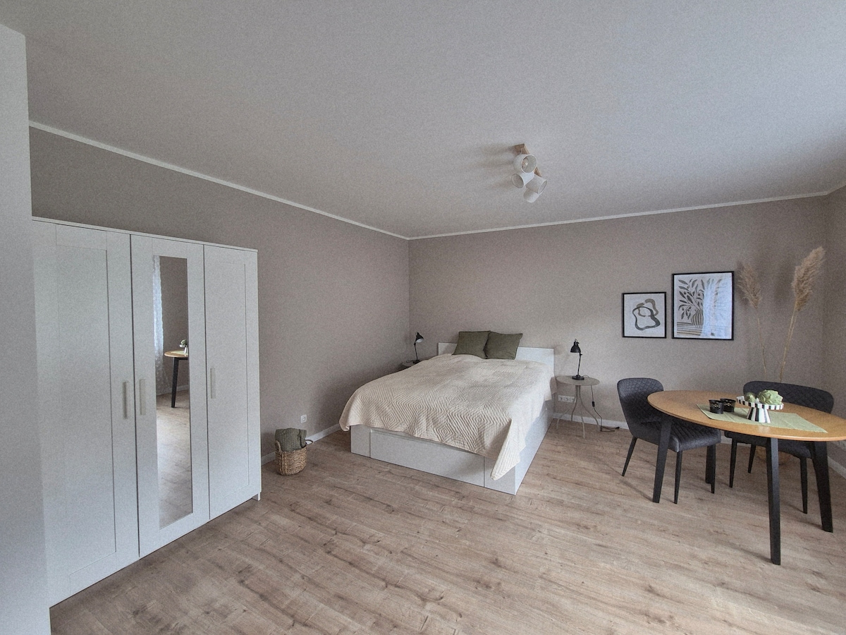 Our completely renovated and modernly furnished one-room apartment offers you everything you need for a comfortable and relaxing stay in a small space – perfect for couples, solo travelers or business travelers. The combined living and sleeping area is bright and friendly. Through the large wing door you have access to a small terrace where you can enjoy the sun overlooking the Upper Castle. 🏰