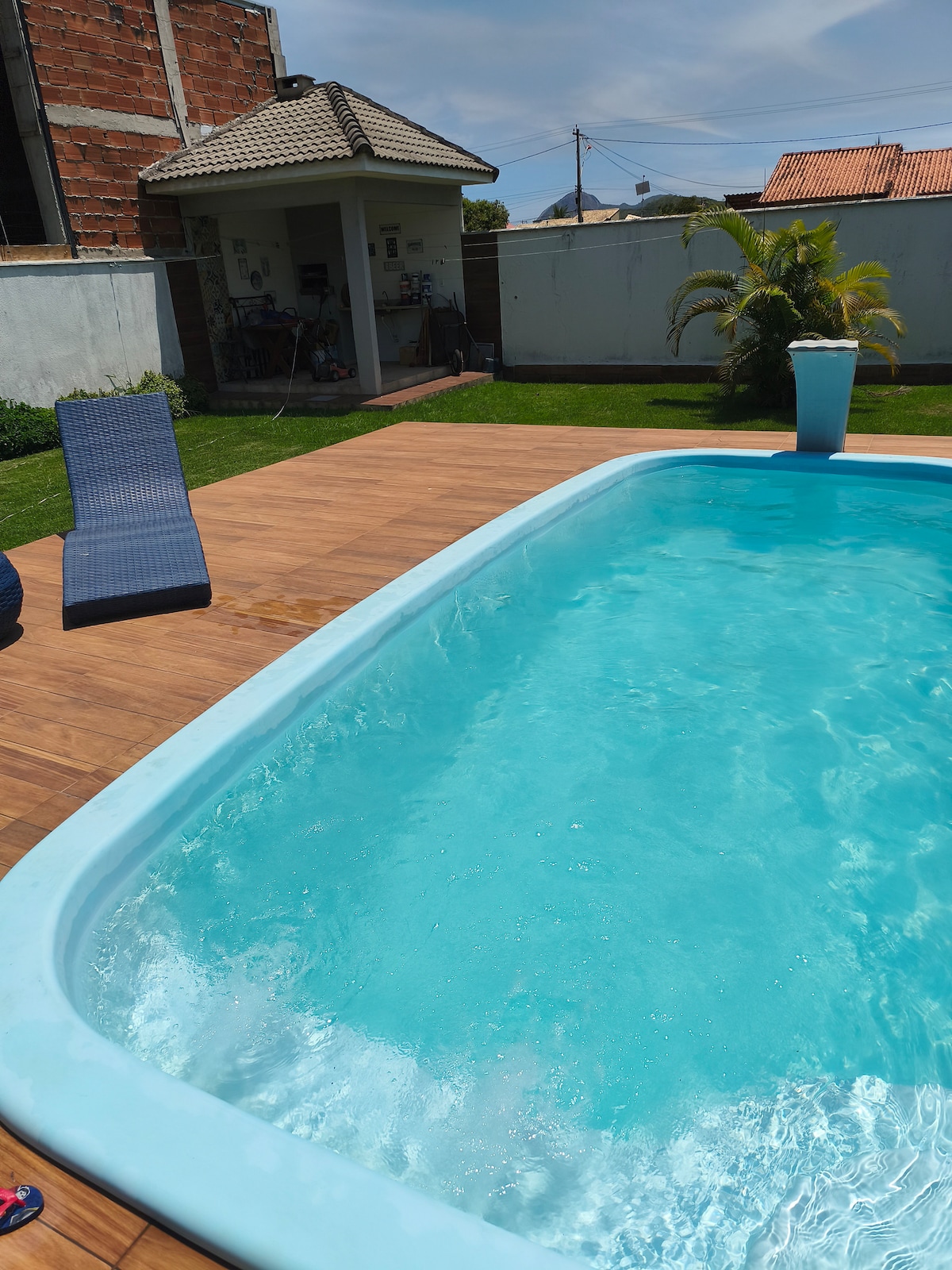 Ad without overnight stay, consider only the day of the event. 360m2 Grass Space, with festoon-type lights to enjoy with friends (holds inflatables). The space has the external area of the house attached, as a support for the bathroom, equipped kitchen, refrigerator, barbecue, wood-burning oven, swimming pool, and soon: gas heaters. Events until 11:30 p.m. There is an option to stay overnight in the house that is among the guests' favorites, has earned 5 stars in all reviews and is a super host.