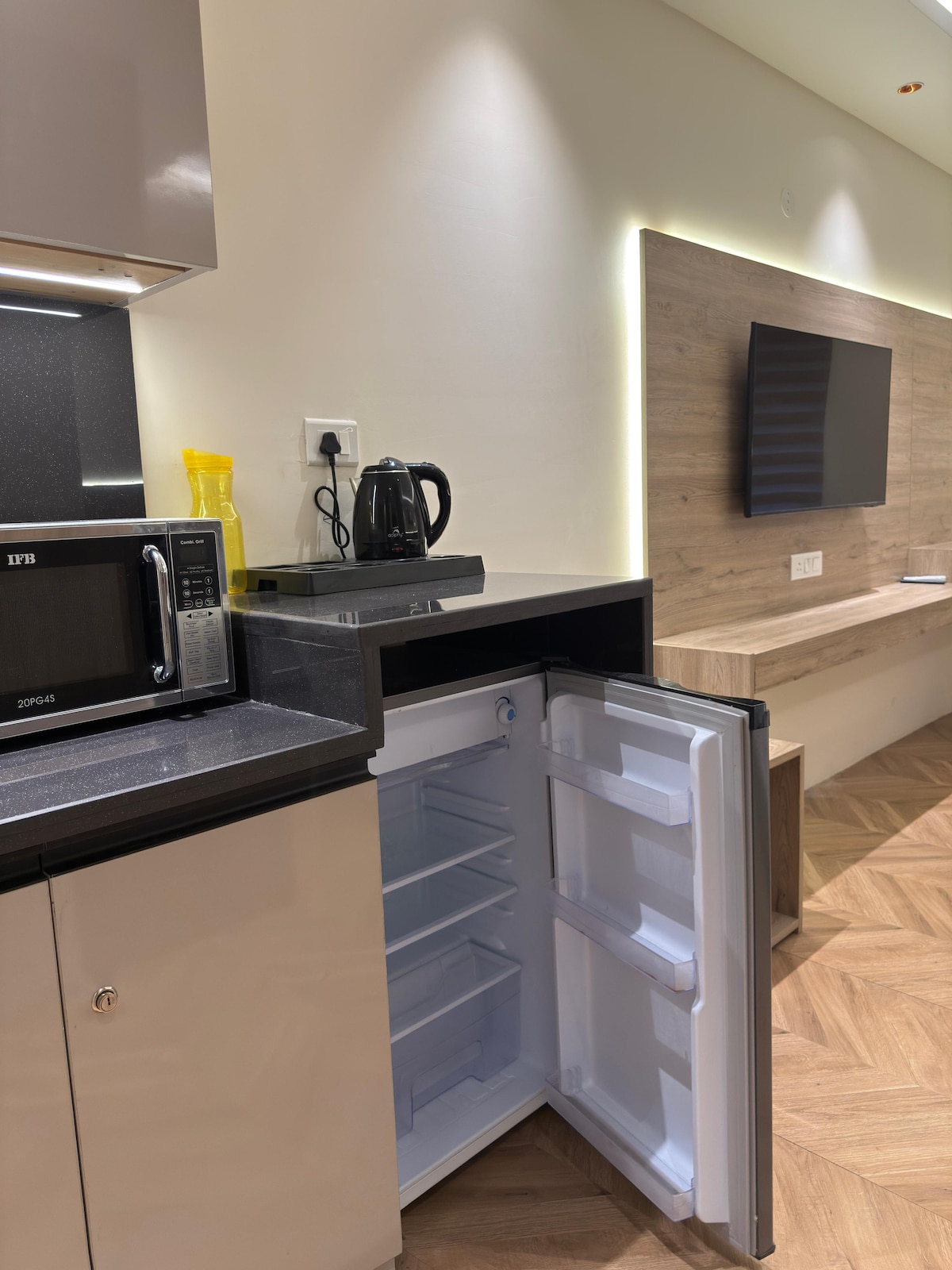 Introducing our exquisite luxury studio apartment: Nestled in the heart of the city, this opulent studio boasts modern elegance and unparalleled comfort. The open-concept design invites you into a spacious haven, bathed in natural light from the large windows that offer breathtaking city views. This apartment is on the 41st floor in one of the tallest sky scraper in Delhi - NCR. The apartment has a river facing view from the balcony!!