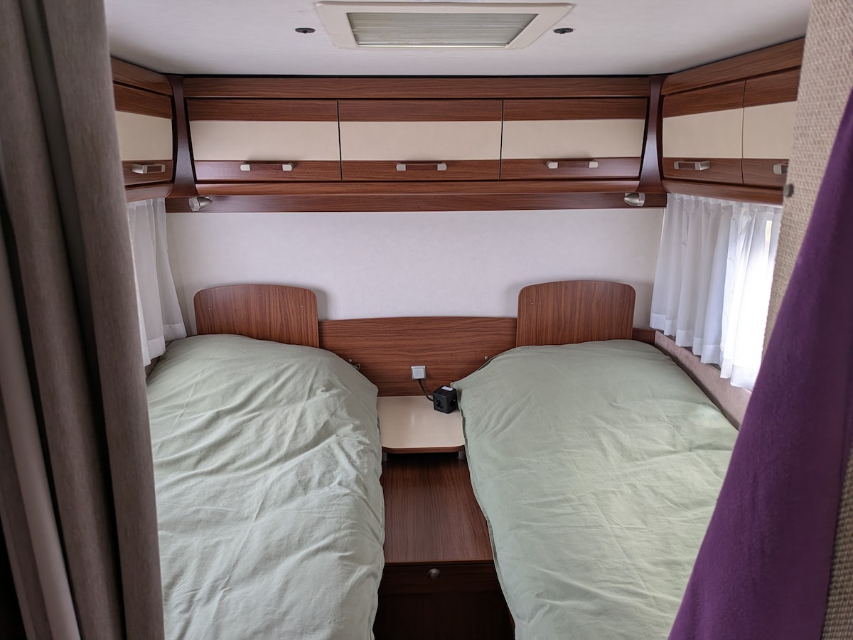 Camping in a luxury camper in nature.