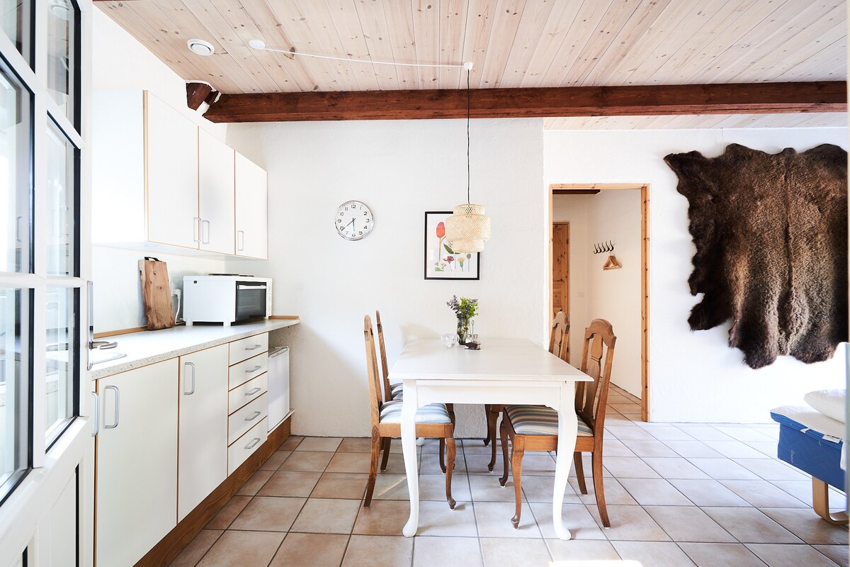 The home is close to downtown and bike path that takes you right to the city's pulse. You will have a private entrance, private toilet and bathroom, small kitchen with hot plate, electric kettle, sink, fridge/freezer and microwave. We have private parking on the property where you can park for free. There is access to large garden with several eateries, ping pong table and trampoline that you share with the landlord. If you need a crib and high chair, we can handle it. And a mattress for a child is also possible. Possibility to borrow bikes.
