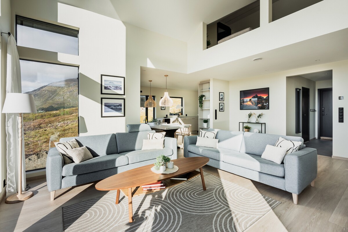 The Panorama cabin, this area, the view, the magic touch of West Lofoten - its all amazing! The cabin is brand new late 2022 and offers all the amenities you could ask for. It has a spacious living room with integrated kitchen. Comfortable furnitures and the best beds you could wish for on the four bedrooms. Upstairs you also find a relax room with a fantastic view. There is one full bathroom with shower and one combined laundry room and toilet. And of course a super electric car charger!