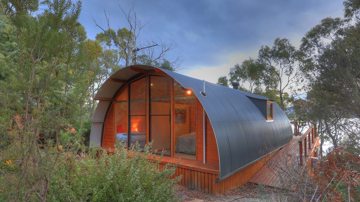 Private, self-contained cabin in the Huon Valley close to Cygnet (7 min), Bruny Island & Hobart (50 min), Hartz Mountain National Park & World Heritage Area (1 hr). Bush surrounds, stunning views of the Huon River & Hartz mountains. Beaches, bushwalking, markets, relax by the fire or on the deck & admire the view. Markets every week in the valley, including the Cygnet market 1st & 3rd Sunday of the mth, Willie Smith's Artisan & Farmers Market every Saturday, 10-1.