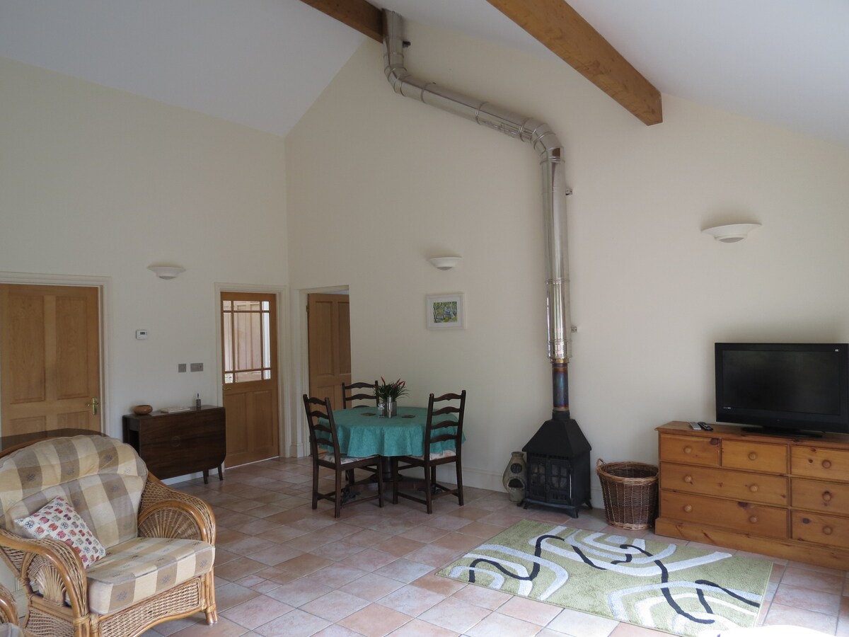 Deceptively spacious self contained holiday let set in 4.5 acres of land at Friars Farm with adjacent stream. The property has vaulted ceilings, super king size bed, with en-suite wet room and further cloakroom. Large living room / dining room also has sofa bed for additional guests. Underfloor heating and log burner, TV with free sat box, well equipped kitchen with many facilities. Private well fenced garden with hot tub and garden furniture for your exclusive use.