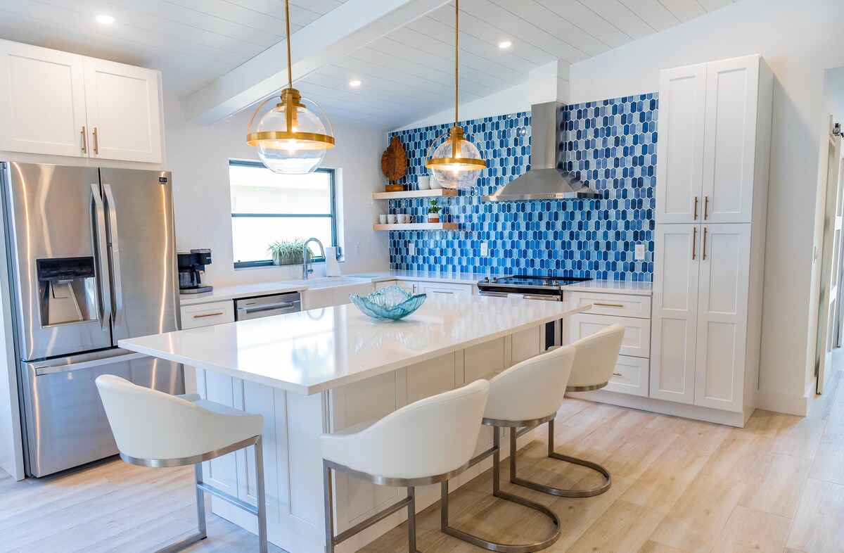 This spacious home located in the desirable 500 block of Naples Park & an enjoyable walk/bike ride to Vanderbilt Beach & Delnor-Wiggins Park. There are 6 bikes ride to the beaches, the Ritz Carlton, theaters, grocery, & shopping/dining/nightlife at the "Mercado". Just re-launched for rental Oct 2025 the house got new renovation with tons of Upgrades New flooring, appliances furnishings & accessories 85 inch Tv Open floor plan w/ cathedral and high ceilings throughout.