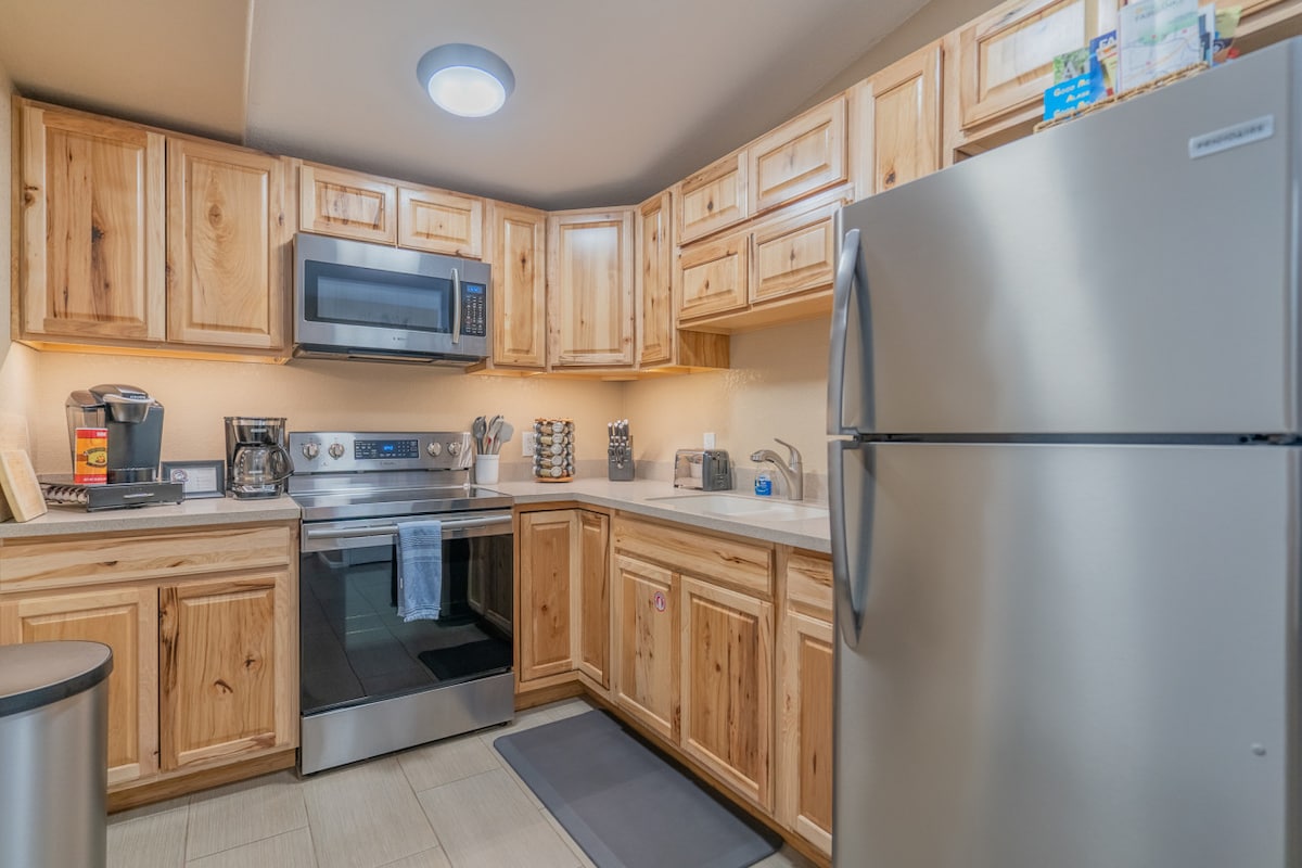 Beautifully remodeled and centrally located home on the banks of the Chena River. This unit features 1 bedroom with a large bathroom and private deck that overlooks the river. There is an attached 1 car heated garage and a private washer & dryer - 1 bedroom with a queen-size bed and a couch with a fold out full-size bed - Right on the river with private deck - Large smart TV's / High speed Wi-Fi - Full size washer & dryer - Large 1 car heated garage - Snacks, coffee and bottled water provided