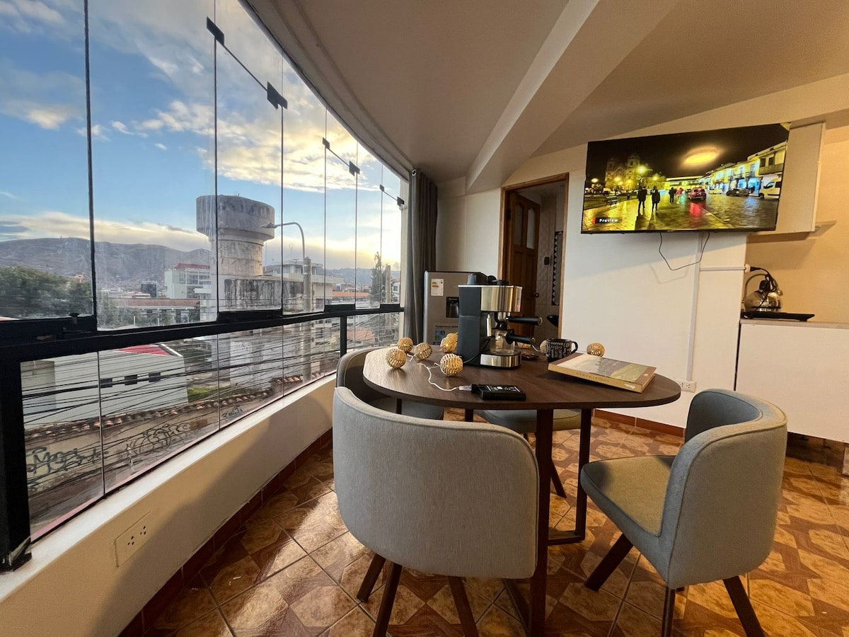 You'll feel right at home. Comfortable apartment with everything you need in the heart of the city, two blocks from the Plaza de Armas, close to all the tourist attractions, with panoramic views of all of Cusco and a beautiful balcony from where you can appreciate the magic of the city. You won't need transportation to get around the Historic Center.