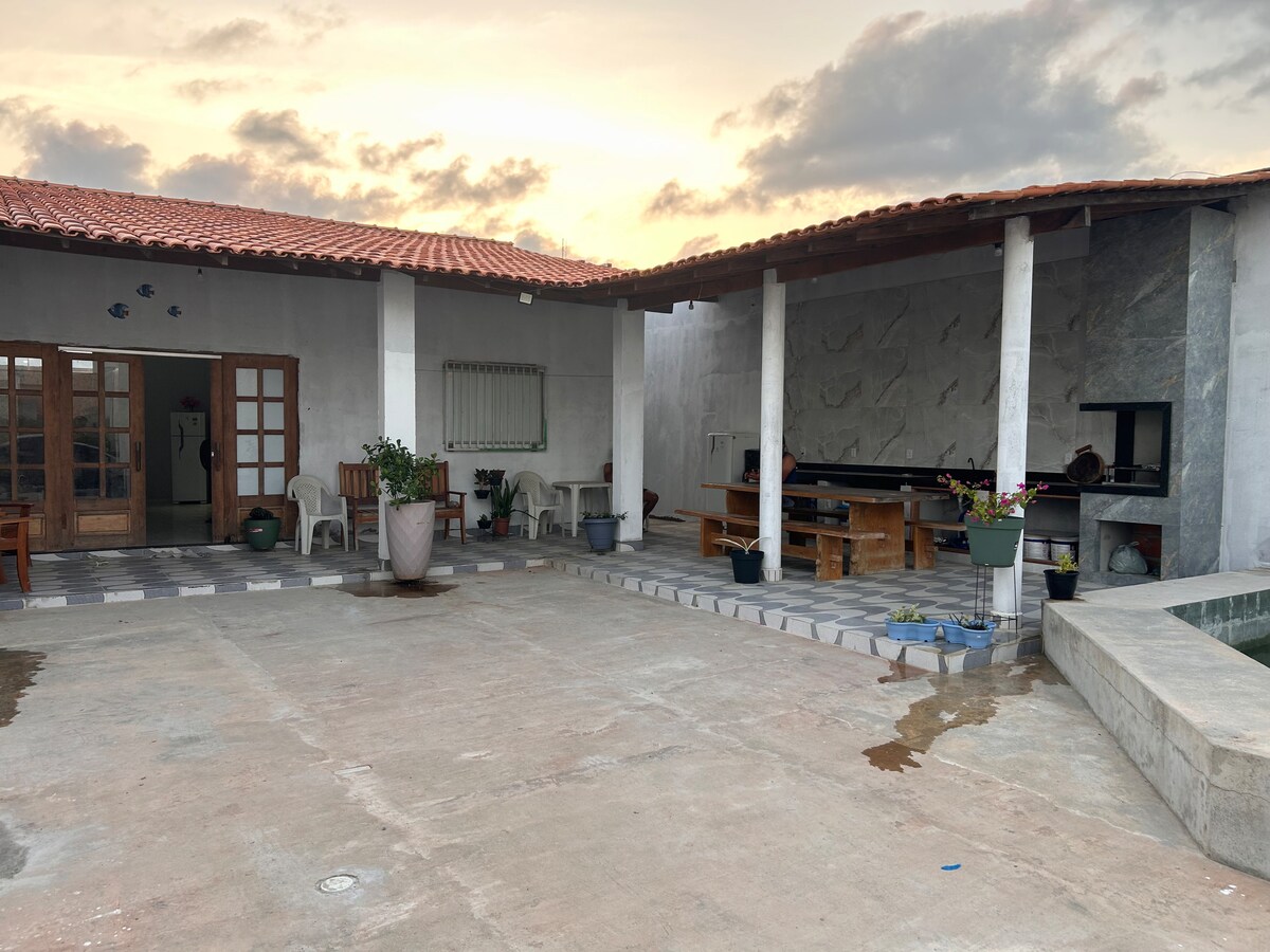 Bring the whole family to this great place with plenty of room to have fun. Chácara Santa Bárbara Manaus is excellent for relaxing and contemplating nature and animals. 🐎 🐴 🎠 🏇 🐕 🐶 🐔 🐣 🐇 🐱 You and your family 👪 will wake up to the crowing of the rooster 🐓 and the birds 🐦 Close to town, easy access by car 🚗 🚙 🚘 🚗 1.3 km from public transportation. We have free 🚲 bikes Soccer field, sand court, barbecue, 2 air-conditioned bedrooms, 2 bathrooms, swings and garden.