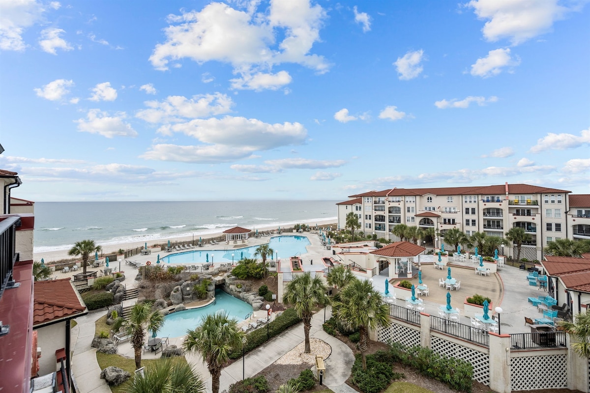 Welcome to Opa's Ocean Oasis!! We're excited for you to experience Villa Capriani's stunning views, beautiful beach, and luxurious, resort-like amenities. Our freshly remodeled, 2bd / 2ba condo was designed for the perfect family getaway. Highest-rated King, Queen + Bunk Beds. Fully stocked Kitchen, Retro arcade table with 400 games; Full-body massage chair; Roku Smart TV's in every room! Enjoy amazing ocean and courtyard views from our covered private balcony. Hot Tubs all year, Pools Apr-Oct
