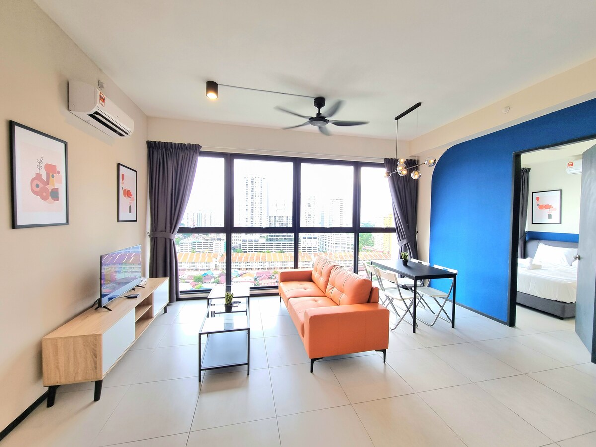 The first-ever homestay in Penang with a massage chair and SMEG Fridge. A cozy 2-bedroom condo in Urban Suites, nestled amongst greenery in the bustling heart of Georgetown. Its strategic location with local shops and restaurants is just moments away. Multiple access routes and walking distance to banks, markets, food courts & etc. State-of-the-art facilities on level 42, offer you a bird's eye view of Penang's architectural marvel, the Penang Bridge.