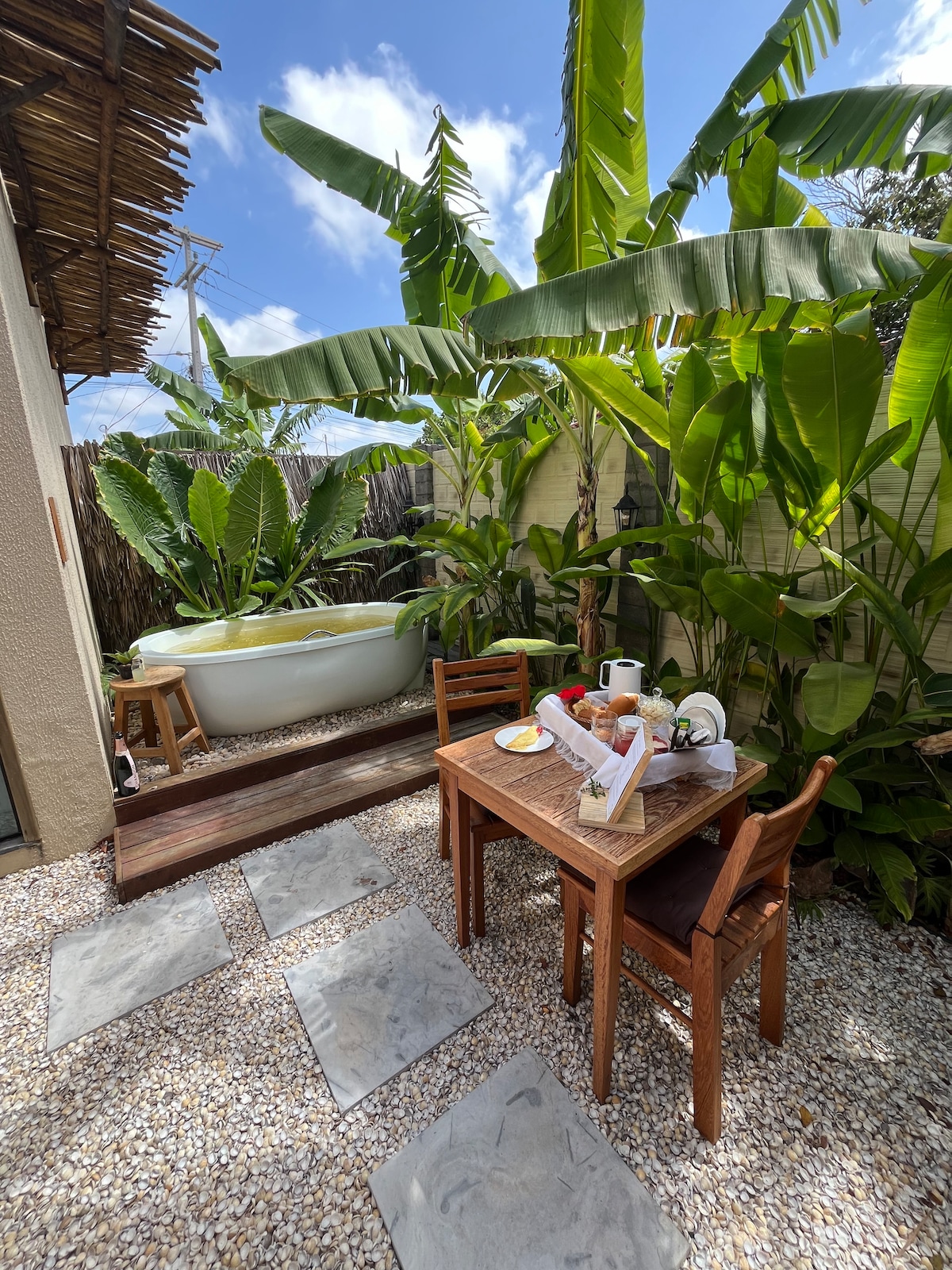 Your haven of tranquility and comfort in Trancoso Located just 600 meters from the famous Trancoso Square and close to the beaches, we offer a unique lodging experience, where charm and sophistication meet the warmth and simplicity of Trancoso. Our exclusive space features two luxurious suites, both equipped with king size beds and hot tubs (jacuzzi), plus breakfast and room cleaning service.